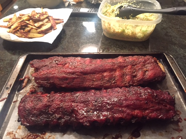 Ribs and coleslaw look great!  Sorry but I can't stand Tom Brady or Belichick.  Too much blatant cheating for my taste.