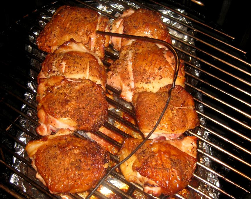 Smoked some thighs indirect at 260 to internal temp of 170. Sprinkled with Weber Salt Free Chicken Seasoning and used apple chips for smoke. Very tender and exceptionally moist and flavorful. Thanks for looking.
