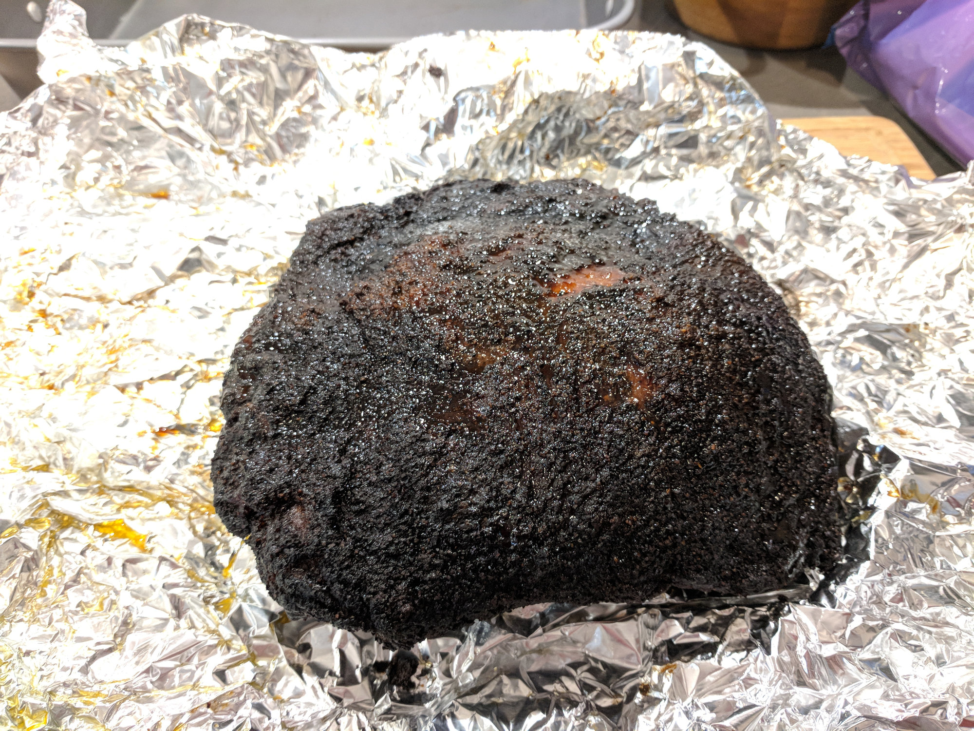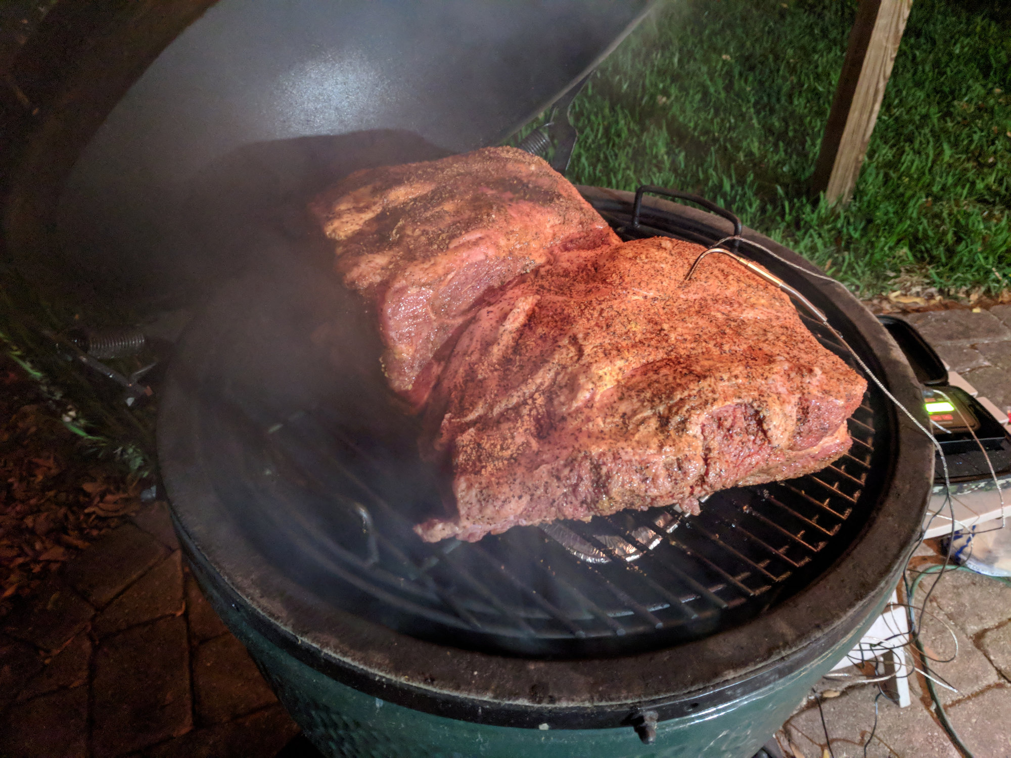 Got some friends stopping by the house today so I decided to load up the large with a 10lb Butt and 8lb Point. Started it at 6 PM last night at 230 and pulled the Point to day at 1130 AM and the butt at 1:00 PM. Both are enjoying a nice FTC for a while. More pics to come when I serve.