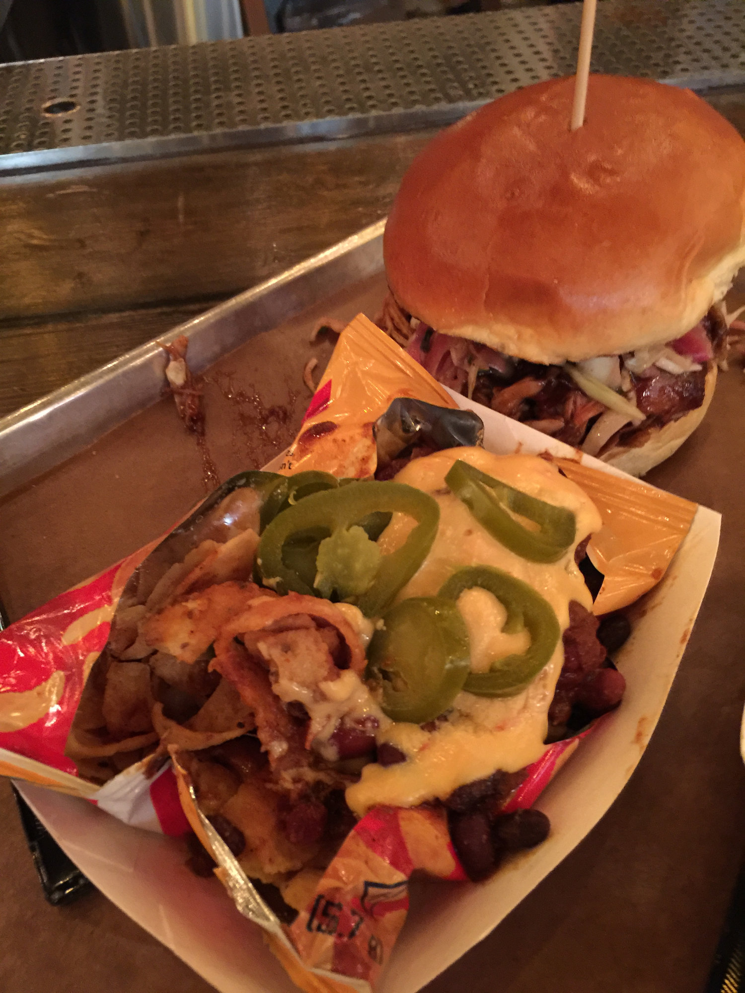 Green Street Meats. Some of the best brisket and pork ribs I’ve had. Definitely the best outside of Texas by far. I was hammered and the pic looks like a murder scene but trust me, it was awesome. Highly recommended.