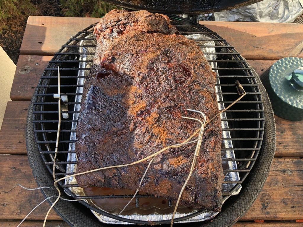 Thanks, that is what I thought too, I know I didn't have a lot of room for the size brisket that I had, but as I said, this is more of a learning experience...R2Egg2Q said:Regarding your pit probe placement, if you want a better read on the temp your brisket is seeing, I'd move the pit probe to where it is over the pan but at least an inch away from the meat (too close and you get lower readings from the meat temp). It doesn't look like you have a lot of room for the pit probes other than towards the back to the sides of the point.