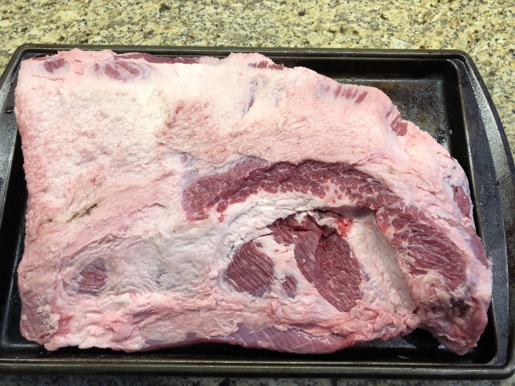 Started Trimming, and 5.5# lighter I was left with the first and second picture below.... took off all the 'hard' fat, and on the top, got a little to close in a couple places, will see how it goes...