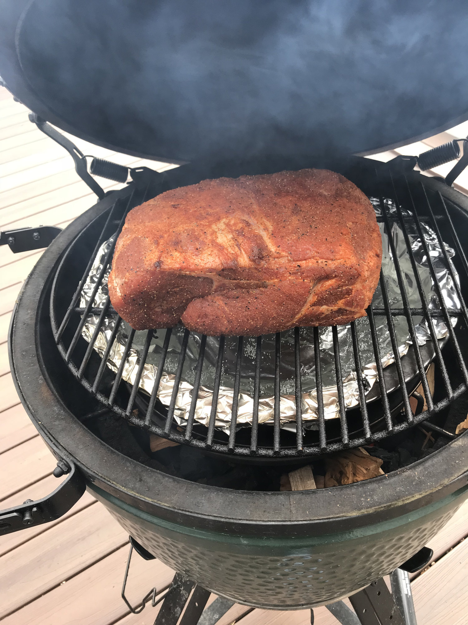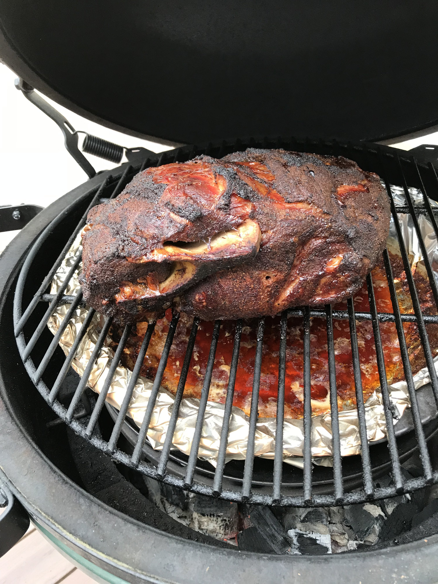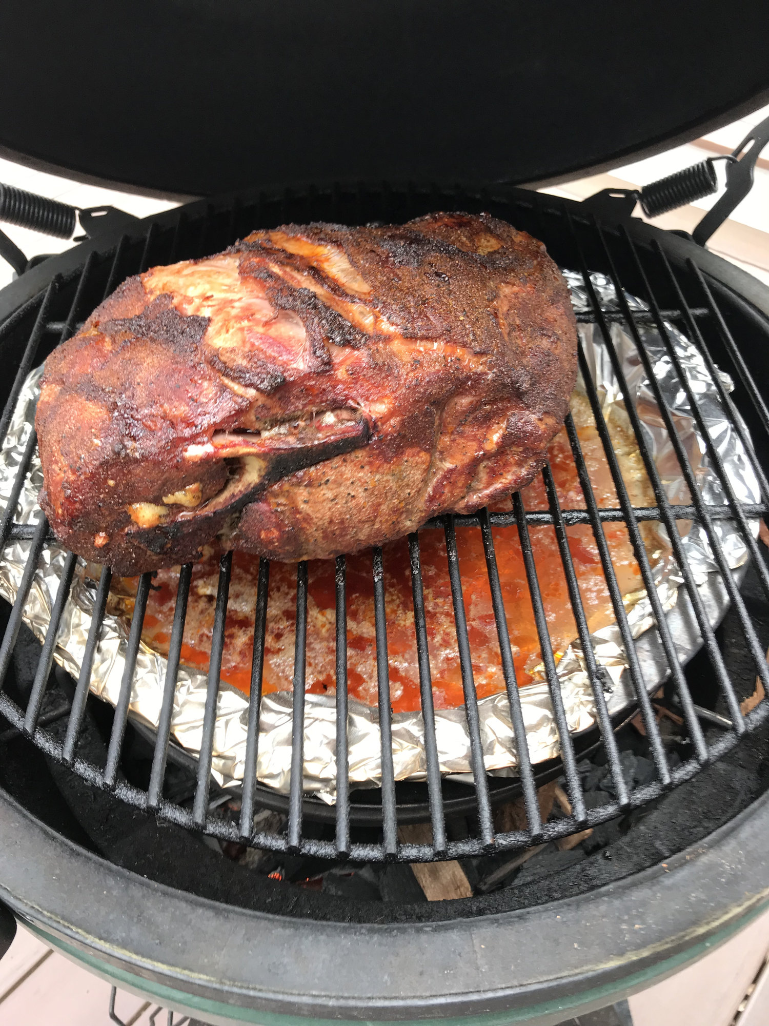 I use water when doing a butt too. It’s the only way I’ve found to get a smoke ring with the BGEI'm in Fredericksburg, VA, and I have an XL and a medium.