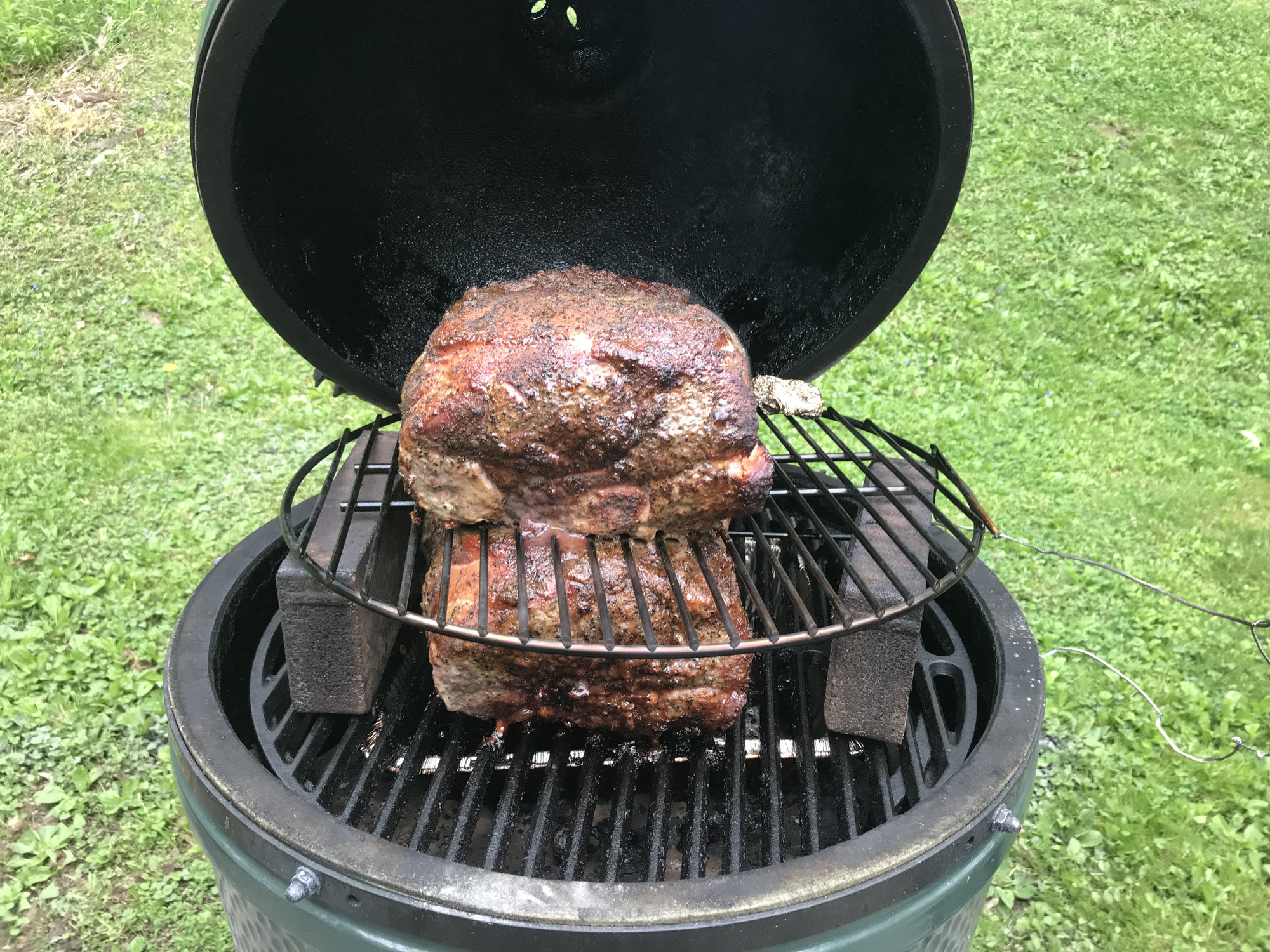 So we are having a bunch of people over for Memorial Day weekend and I’ll be making pulled pork. I have the CGS PSwoo and sliding D grid extender (large BGE) that I use for two level cooking for lots of wings, ribs, etc. However I’ve never had to use it for pork butts since I’ve never made more than two at a time.