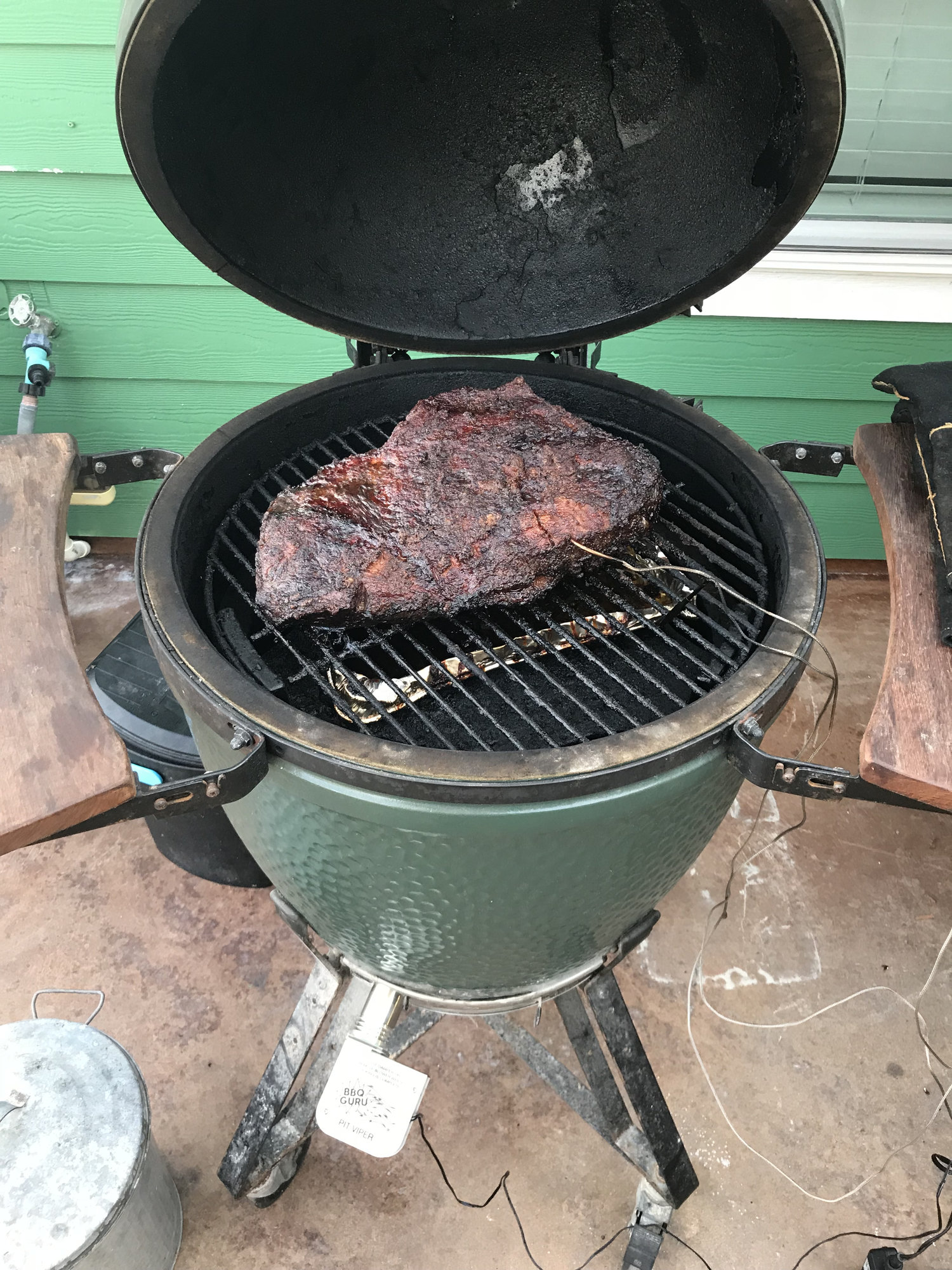 I let the fire get hot early but still in the bbq range so I just let it.come down  you can see when I discovered the loose prob one the food and each time the egg was opened