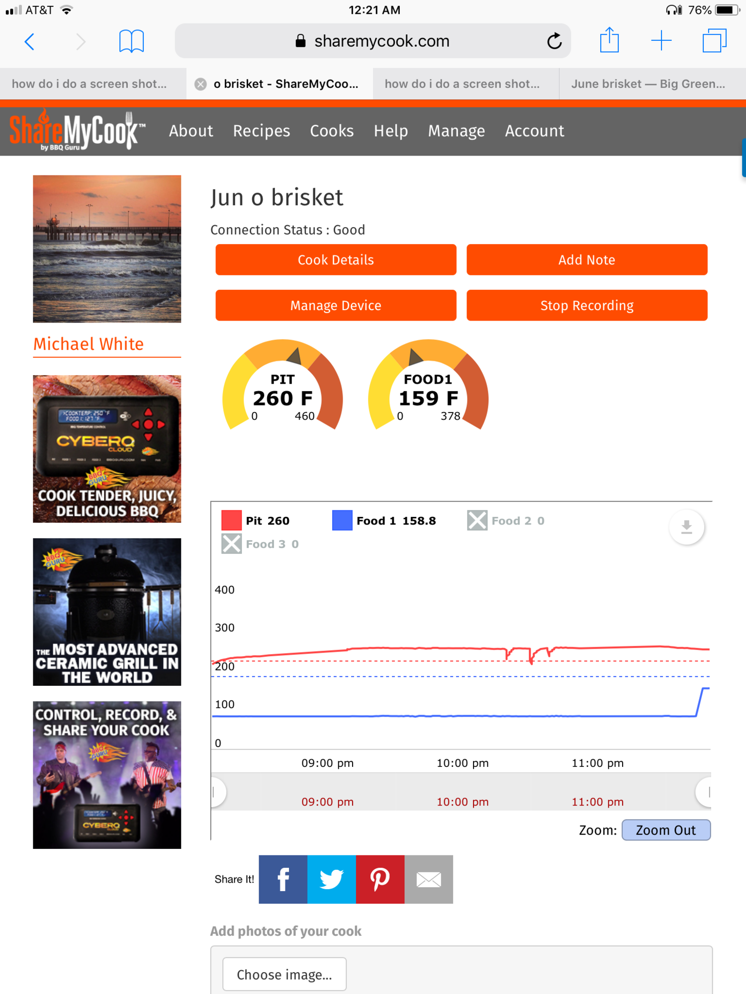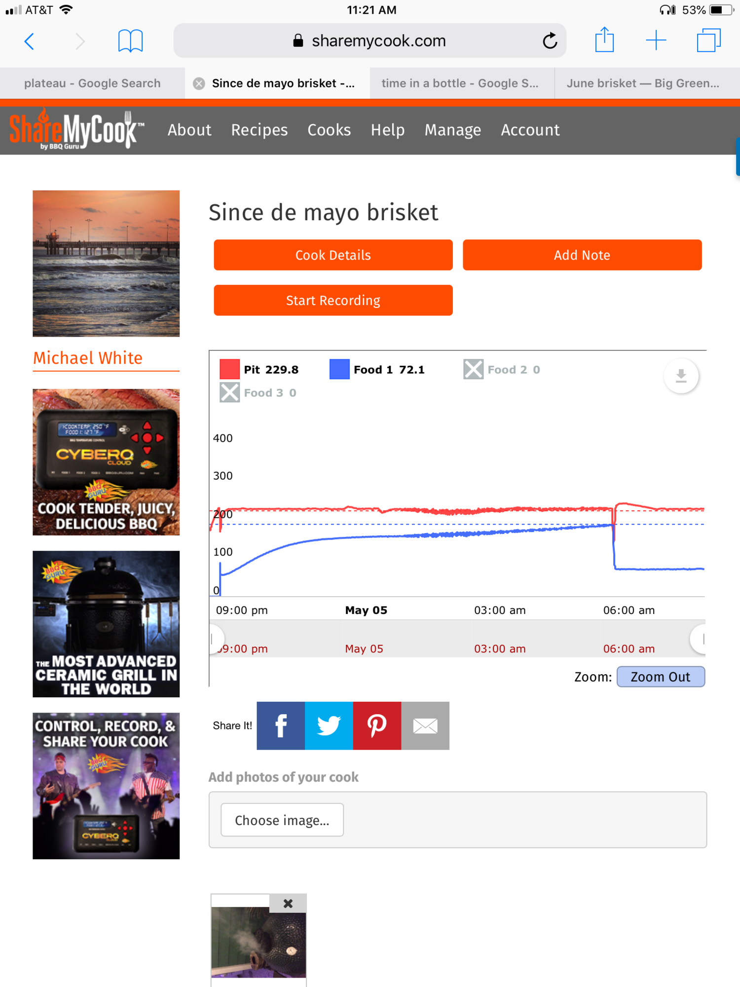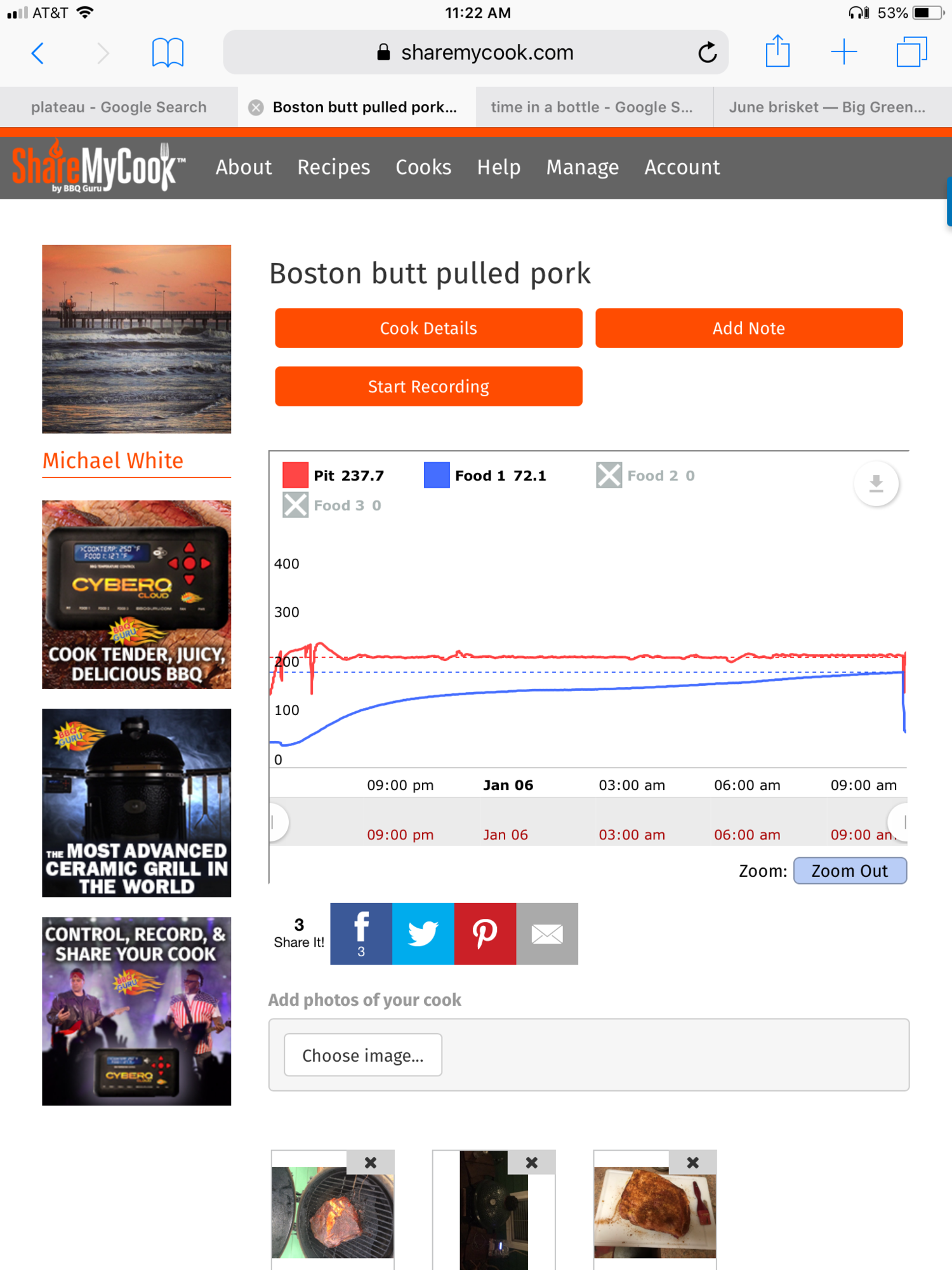 Love the pictures. The log of the cook is great better than a spreadsheet I was thinking of doing..