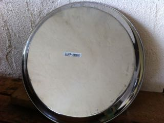 large egg, 16" stainless steel pan. Not disposable.  From CGS.  They have an 18" for XL eggs.   They are actually made for serving trays.  You can find larger ones on the web that might do for XXL eggs, but they seem to be quite pricey in the larger sizes.