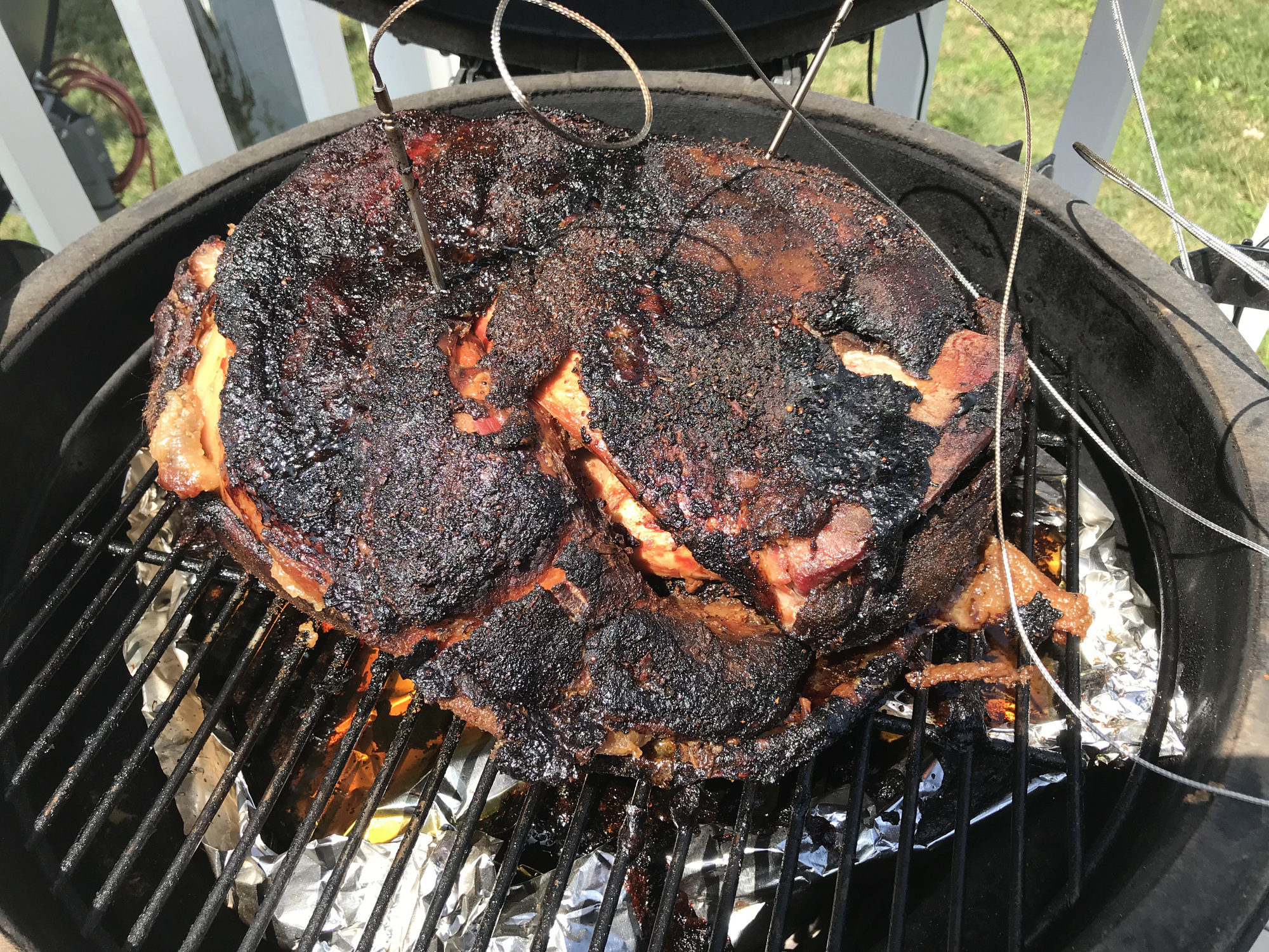So it’s been a weird cook. I’ll go over that tomorrow. No stall yet and both probes are at 165ish. Smells outrageous when lifting the lid which isn’t typical. We shall see.