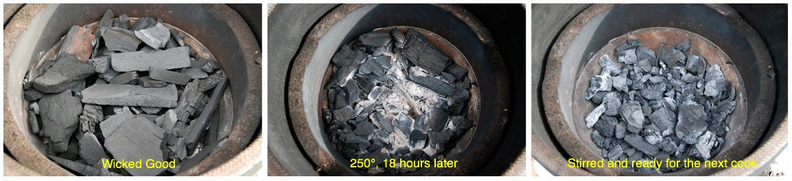 If you filled to the PS, you should have plenty of lump. This was an 18 hour butt cook with Wicked Good. Didn't even start with a full load. EDIT... Large egg.