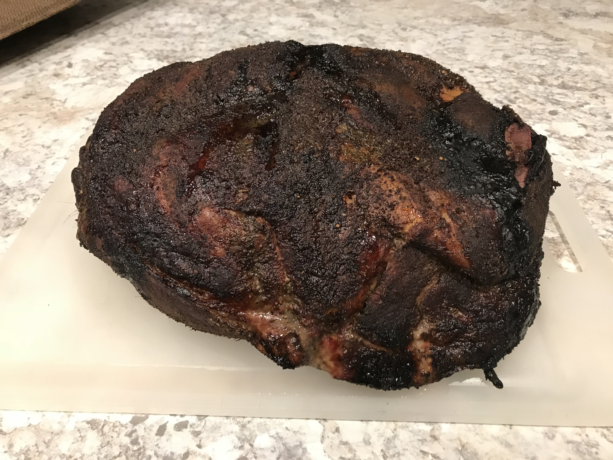 So I’ve been gifted another large butt, really good puerco. I don’t know how much it weighs as my kitchen scale only goes to 10kg or 22lbs. I’m going to have to remove the shank so it fits on the L but it will still go over 20+.