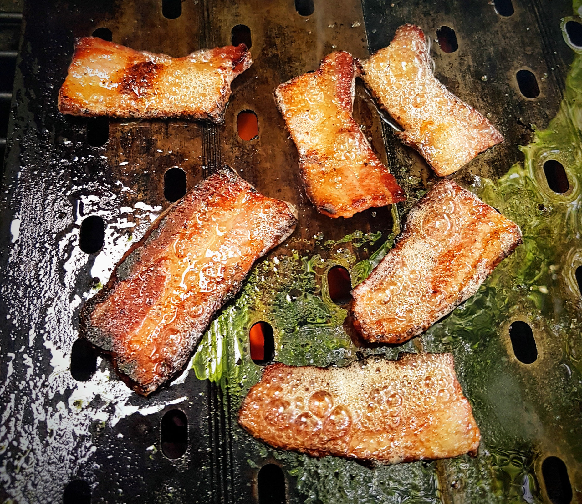 Leftovers tonight on the griddle. First there's home cured bacon, because bacon!