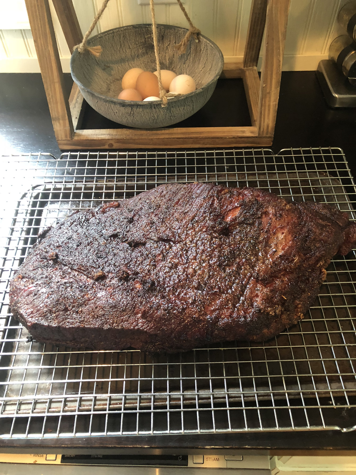 Just pulled it. Mostly butter-like feel in the flat, point is all buttery. Not as dark of a bark, but that’s prolly due to the shorter cook. Resting now, will foil, cooler, oven combo until it’s time to eat.