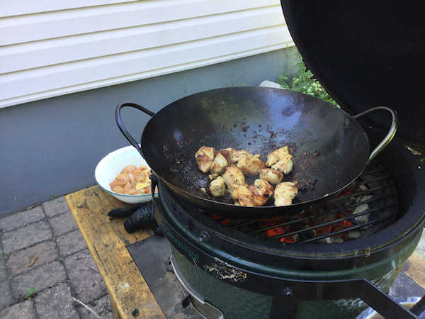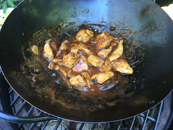Fried up the chicken, should have gotten a Wok with a handle, but after burning my hand several times (doing a Homer) figured out I can just pull it back to stir, with gloves on.
