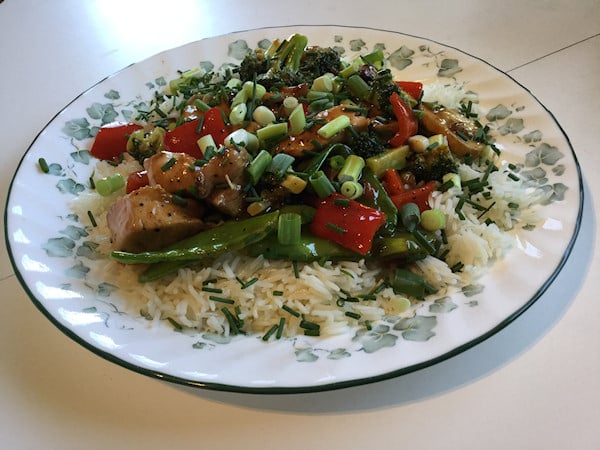 With vegetables cooked, removed and added chicken and sauce to thicken. This was the smaller batch I did for my son who refuses to eat vegetables.