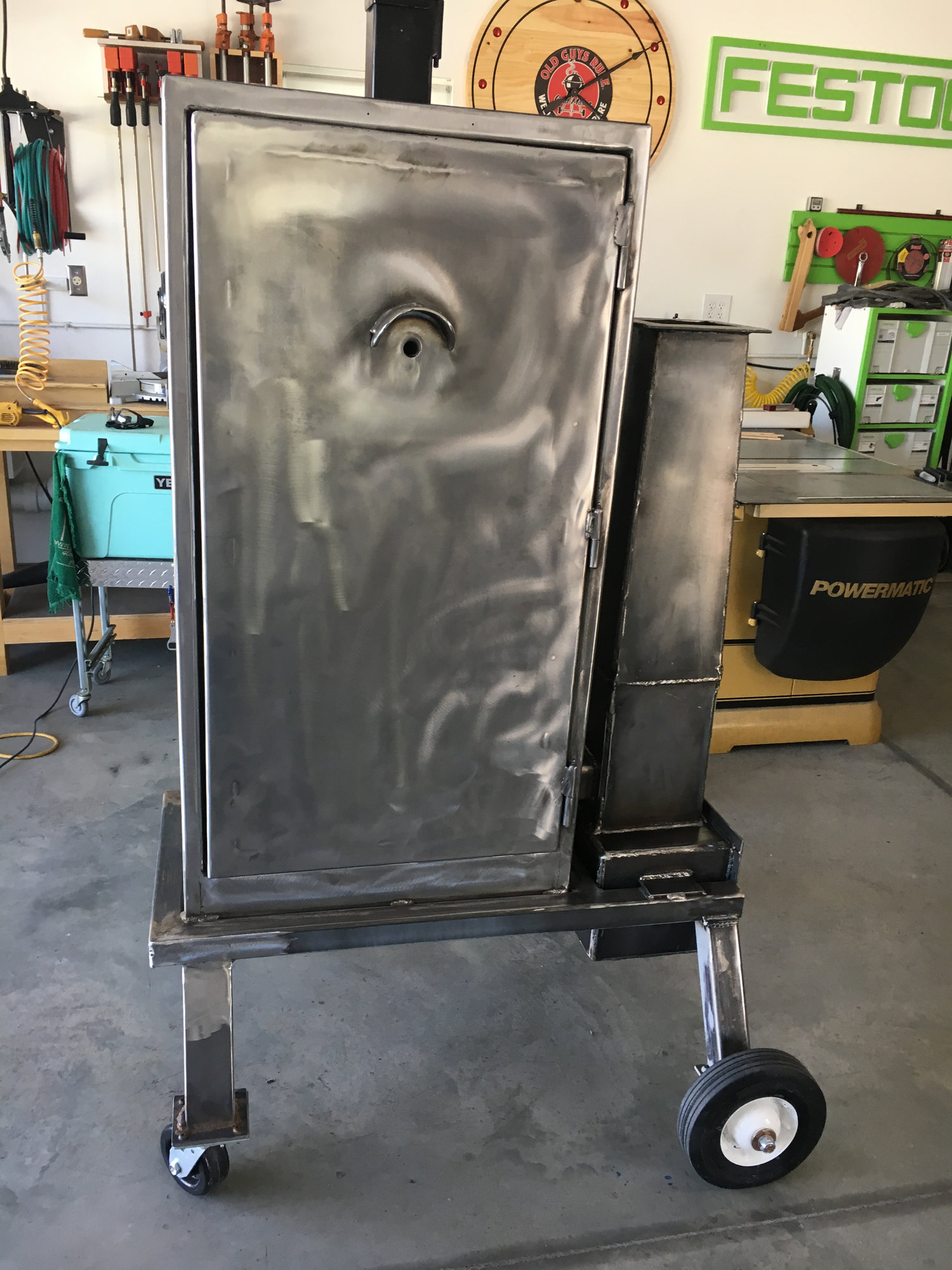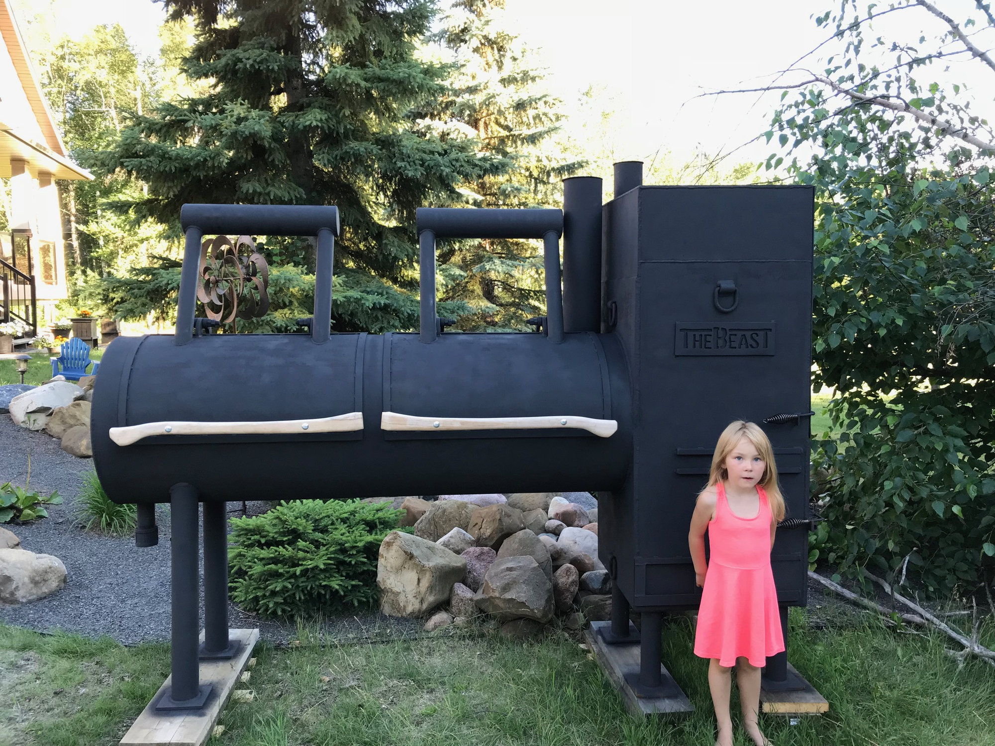 Great looking smoker. You must do a lot of large parties. I could never fill that thing up. I have a question. Being that its outside uncovered. How are you going to manage rust? You are in Canada correct? I would think that thing would rust up in about a month during the wet seasons.
