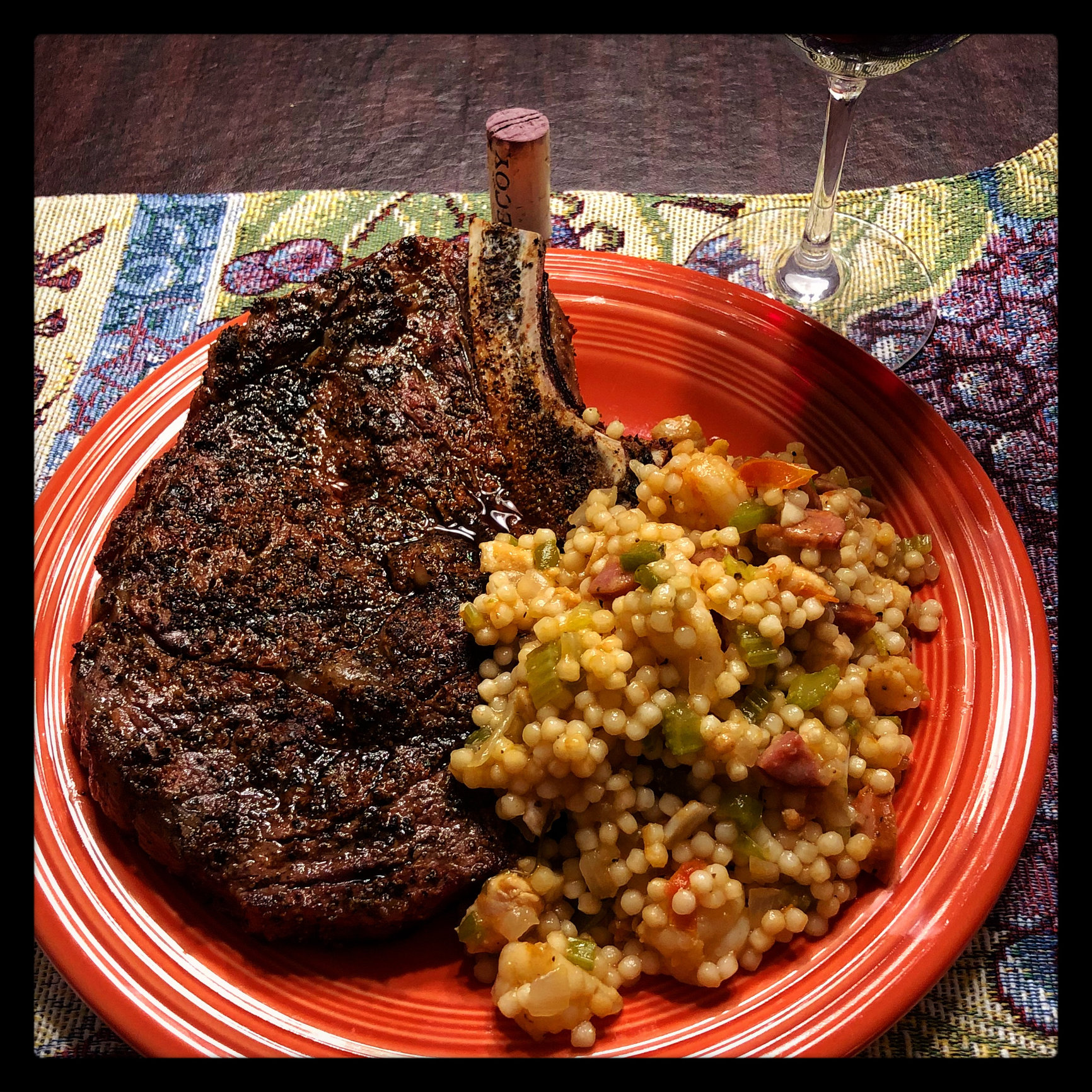 Friday night... Some prime steaks and a batch of couscous jambalaya...