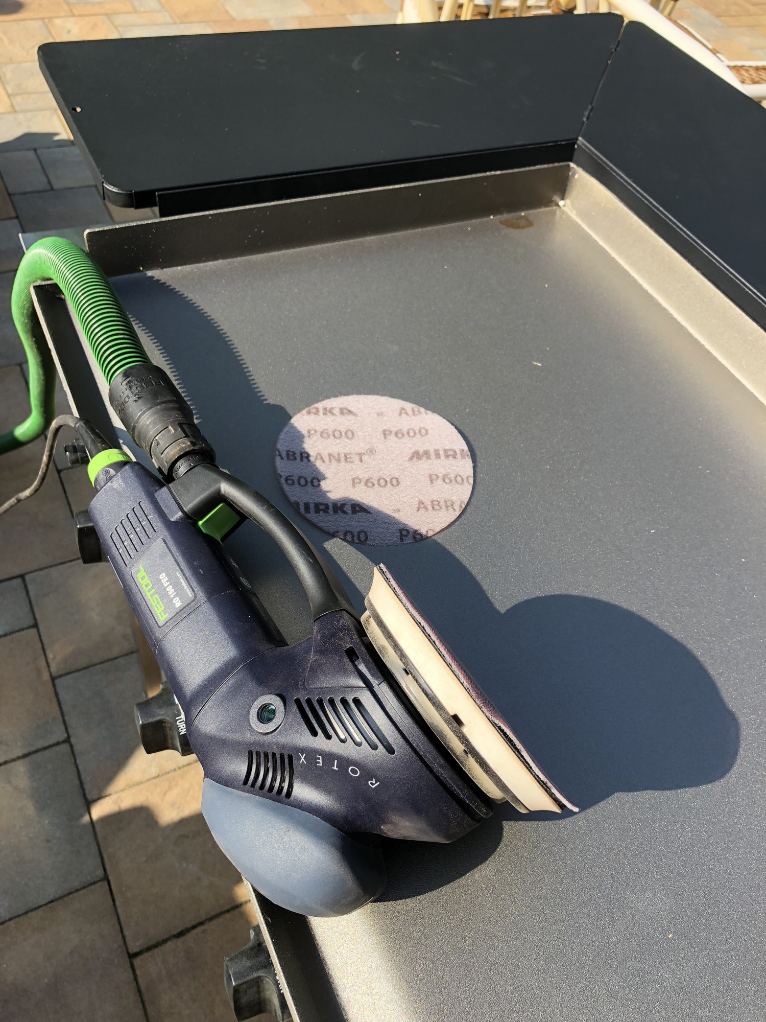 If you can, take a sander to the griddle top before you start seasoning it. Not necessary,  but it helps.
