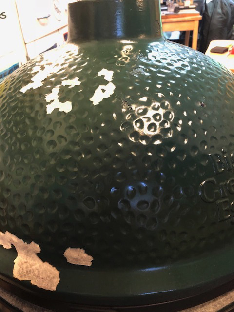 Thanks everyone. I am quite pleased with the outcome. Wasn't feeling great with initial purchase, but once I accepted that I needed a new hinge, and the cost would add to my "purchase price", I was happy. Thanks to the Ceramic Grill Store for good customer support and fast shipping!! Pork is happily smoking away. @ChrisSonn23 will definitely check on the dealer paint. Do you know if it is a match for the glaze (same material but not baked on) or a simple paint like I go from Lowes? To be honest, at low temps, (smoking at 240F) the paint is holding up and matches perfectly.