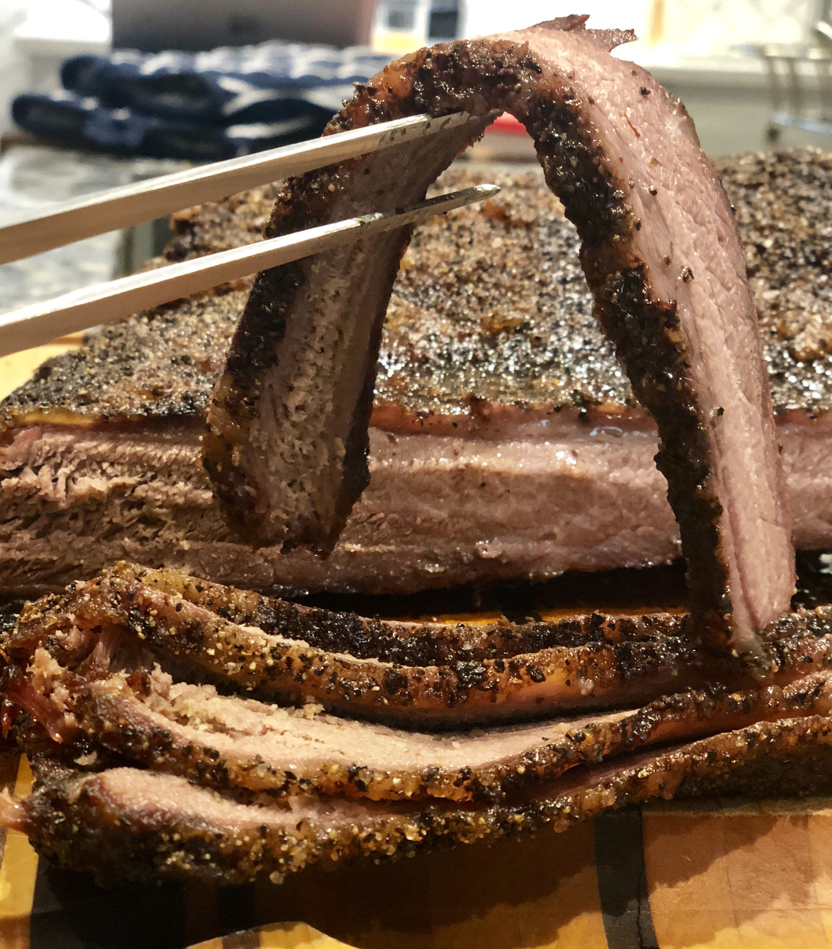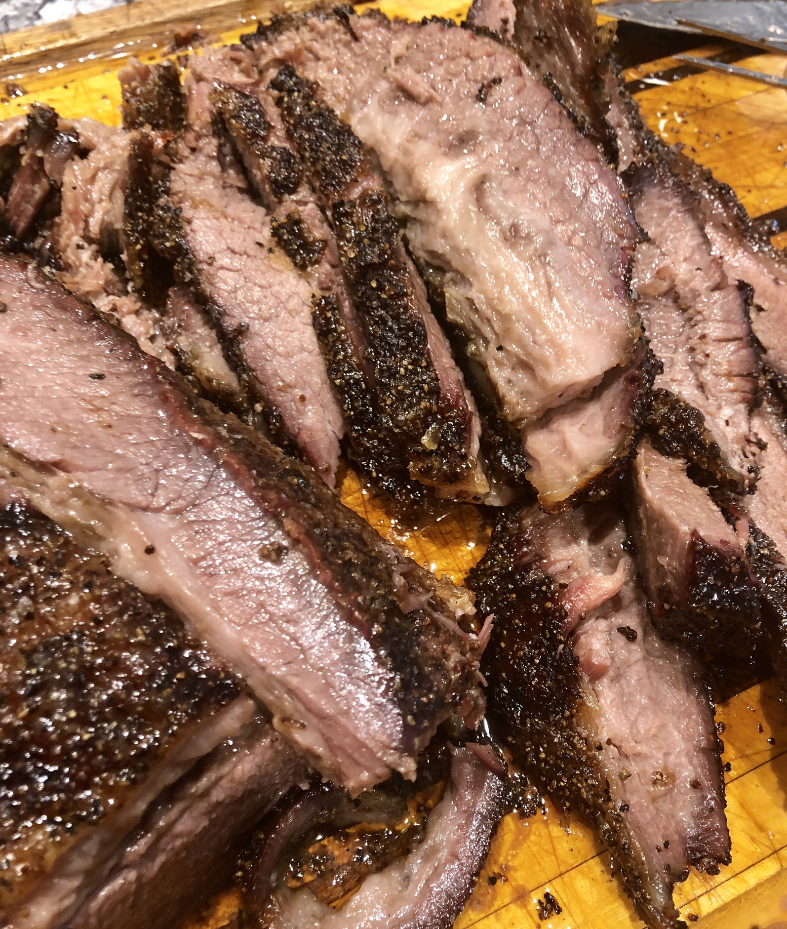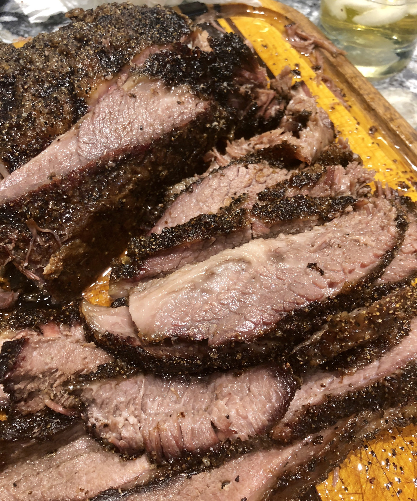 Still full. Don’t have the fully sliced money shot bc was slicing and serving the flat and the point simultaneously. This was the longest I’ve cooked an SRF brisket — 12 lbs took 17 hours to get to buttah in the flat and jiggly as hell, just shy of 200 degrees. Maybe could have used even a *bit* more time, but even tho the brisket drives the cook, SWMBO demanded (correctly) that the inlaws get fed.