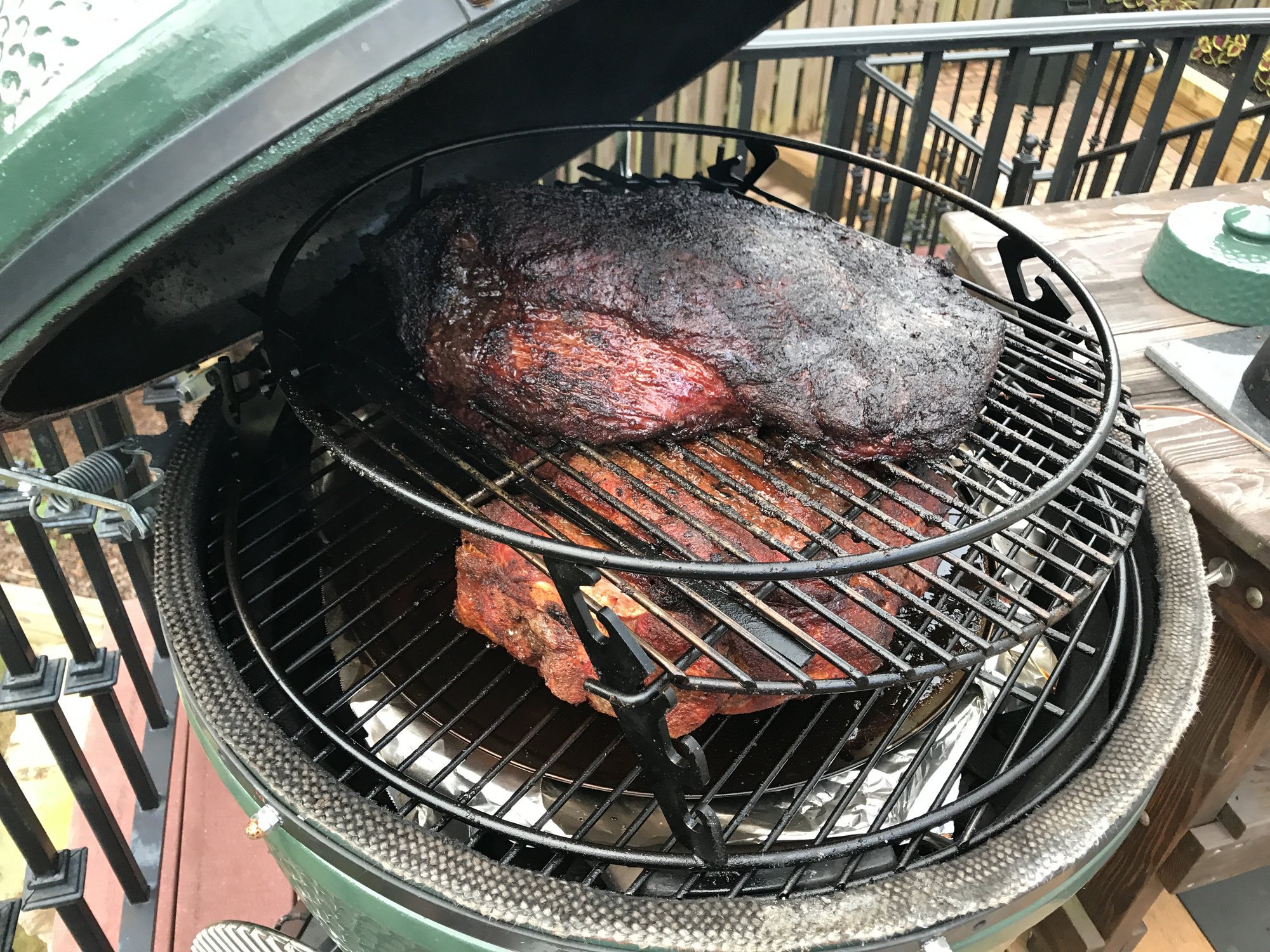 @DoubleEgger I like the way that set-up looks and that you could still fit the brisket on the sliding grate.  Did you try and keep the temp lower than you usually would for brisket to adjust for the reflective heat?