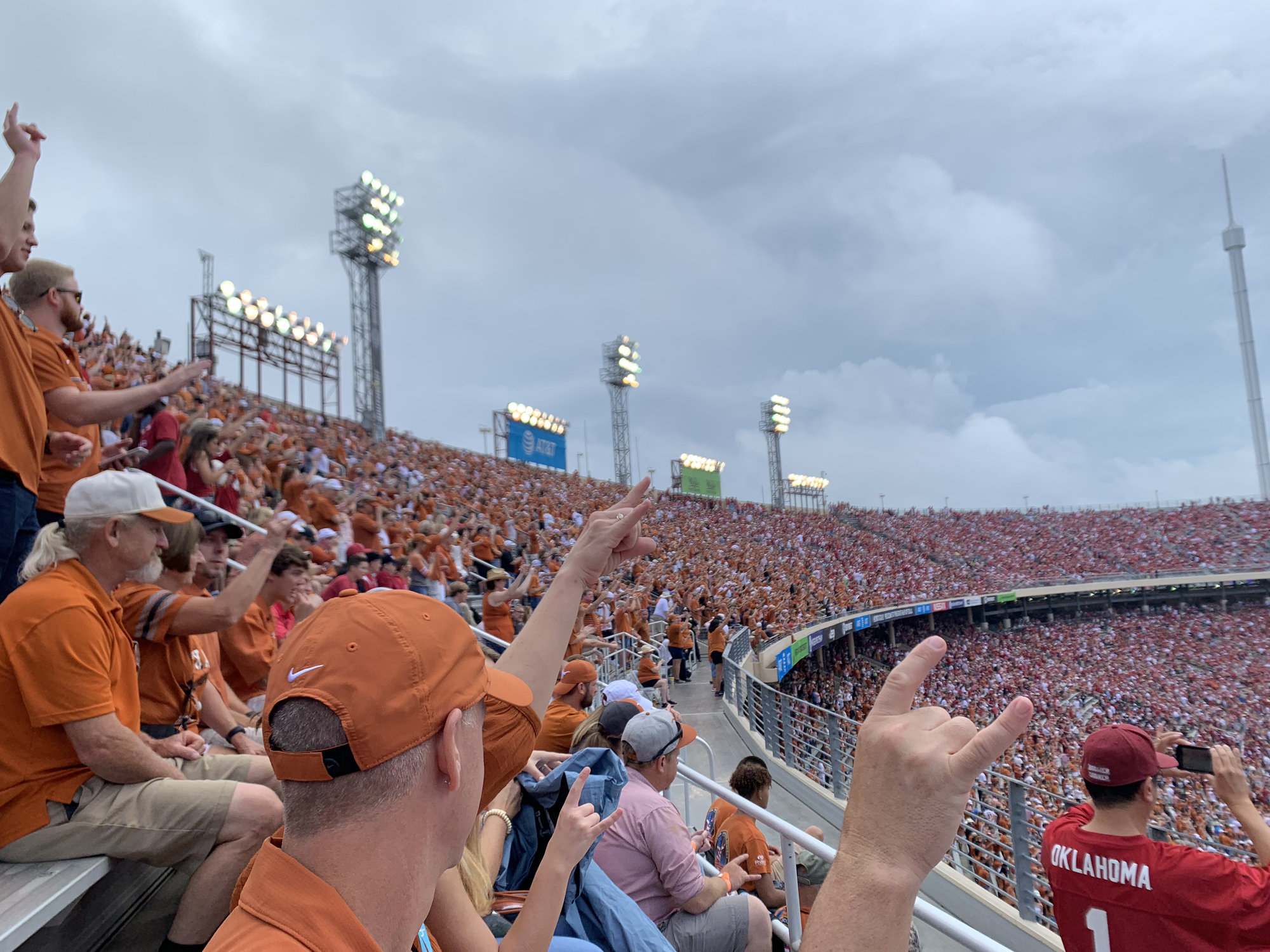 Thanks - it was lots of fun, and crazy loud. This was my first Red river rivalry game. Truth be told, I was just planning on tailgating but a friend had an extra ticket last minute. At the end of the third, up by three touchdowns, and me with a sunburn that will go down in the history books... We left for the tailgate. I'm burnt so bad I don't regret it, I couldn't do another hour.+++++++++++++++++++++++++++Austin, Texas. I'm the guy holding a beer.
