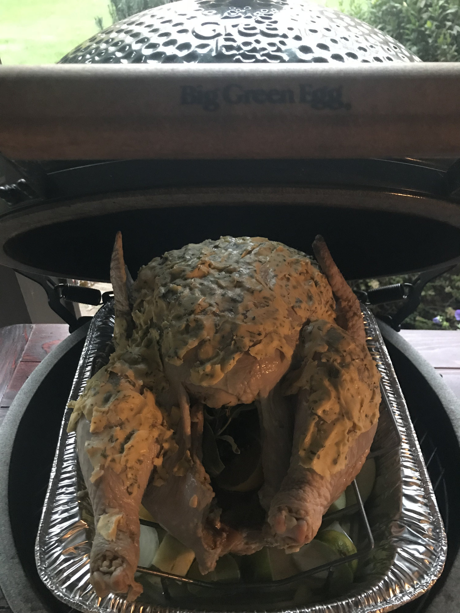 Good luck, y’all. My 11.5# organic Whole Foods Amazon Prime deal has been in the dry brine since 5pm Tuesday. Looked at it yesterday to test fit in the Egg. Very little liquid in the pan. Hoping it’s all retained in the bird.