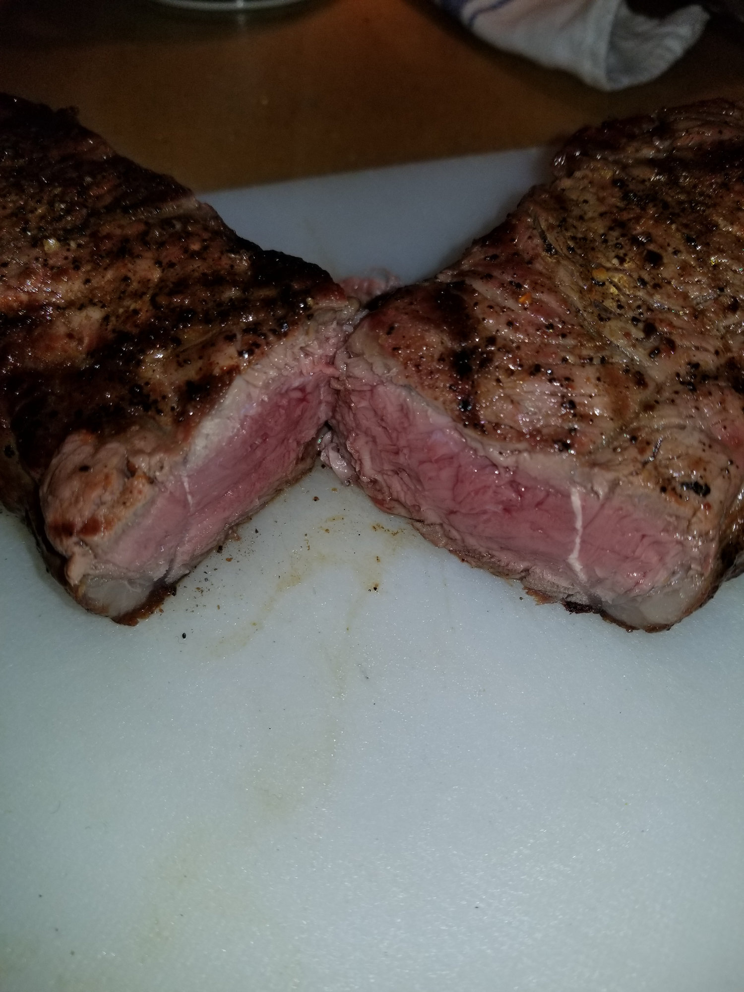 • Looks like a good meal for a bachelor night, just missing the beverage to round it all out. I tend to only buy whole loins or rib roasts from Costco and slice them to size myself
