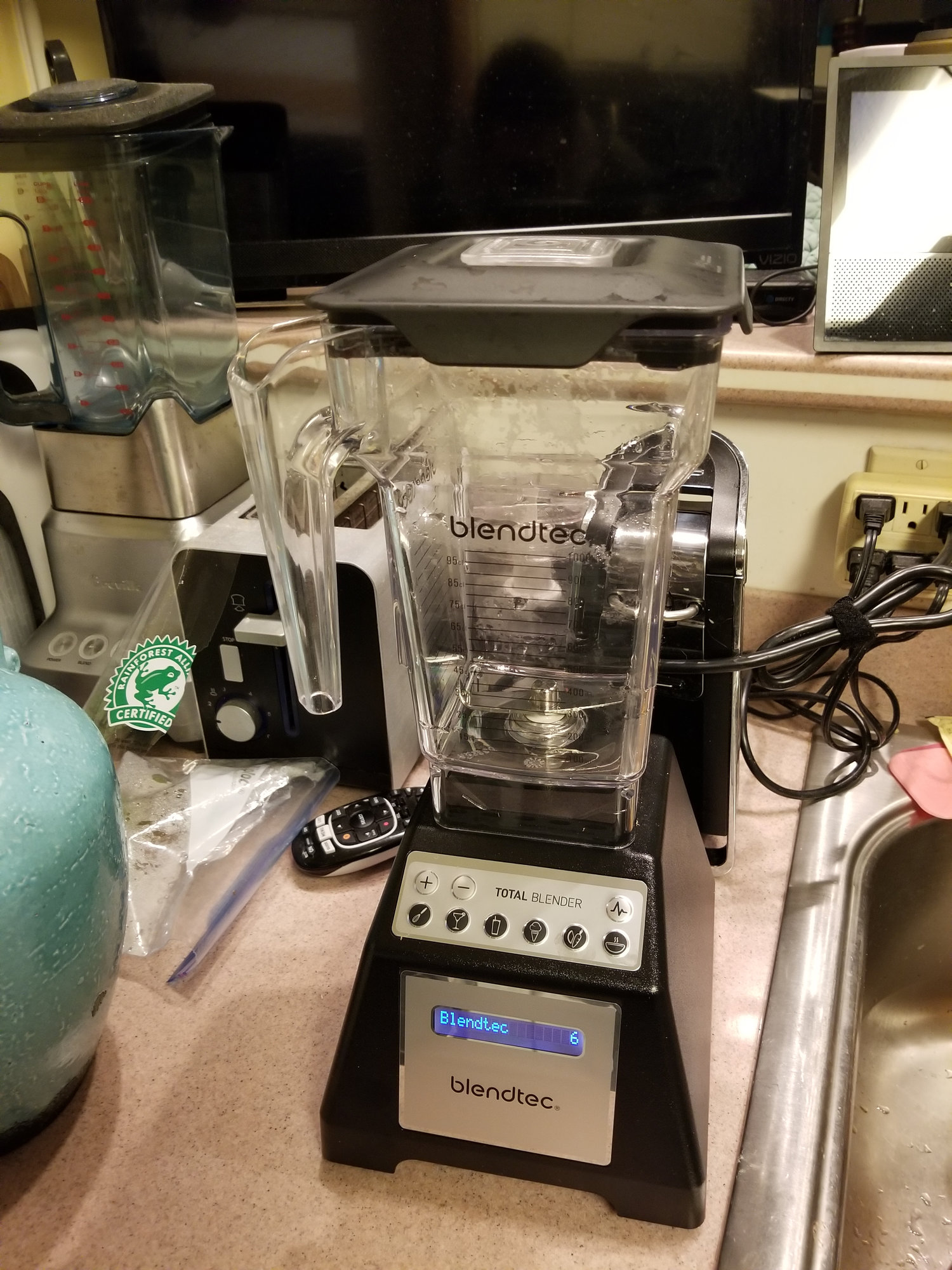 One other note - the mixing cup is gradated (how did I know that word?) to a liter.  Which is a bit small compared to our Breville, which handles 2 liters.  Not a big deal, most of the stuff I blend fits fine.