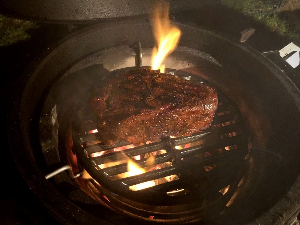 Searing in the MMX with the spider getting the steak very close to the coals: