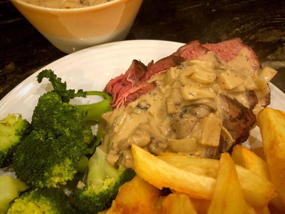 Alder smoked ribeye with SWMBO's signature Madeira and mushroom sauce