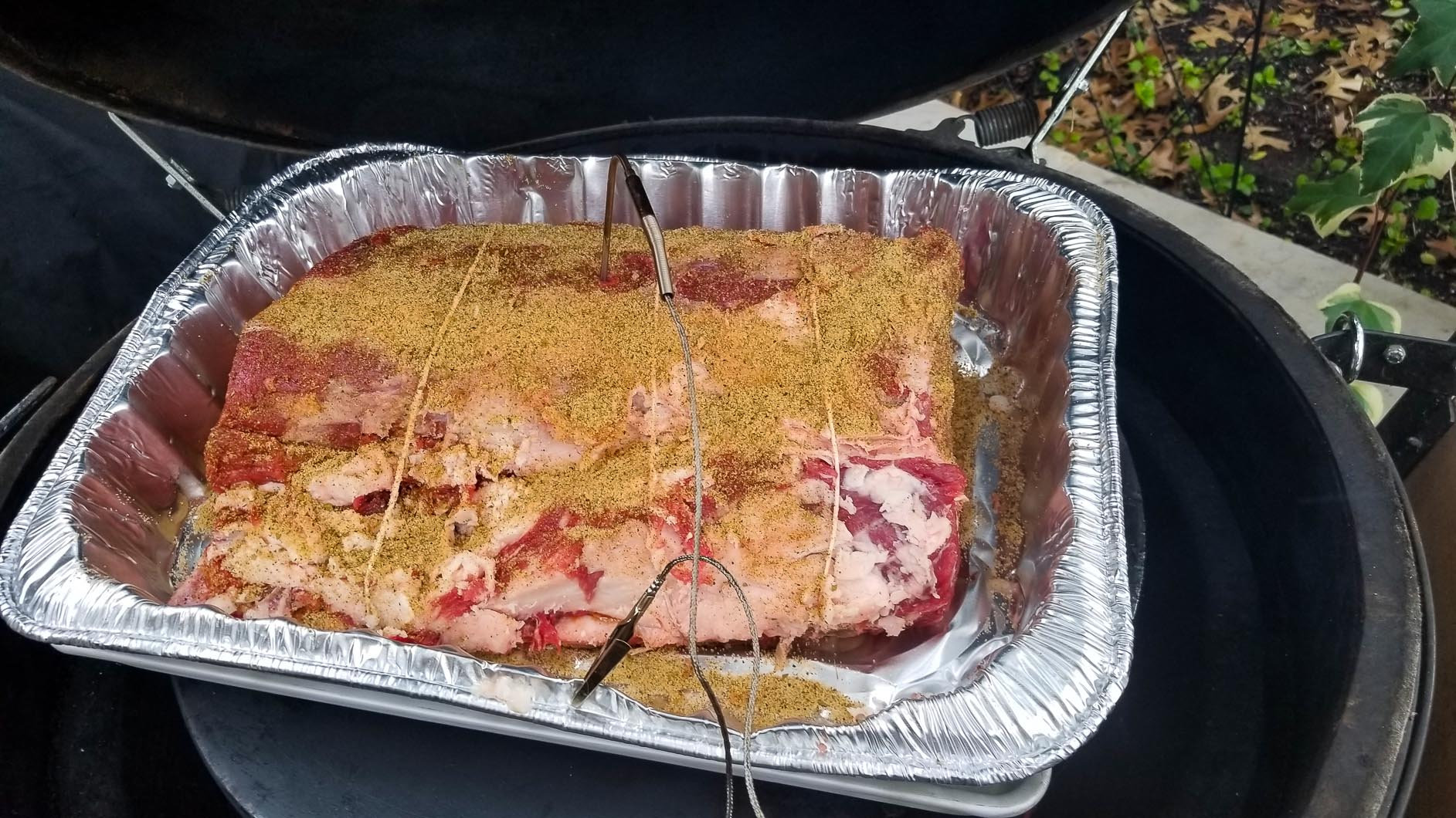 For the record, I moved the pit sensor and attached it to the top of the meat sensor which gave me a much better reading.  She went on at 3:00 and was pulled at about 6:00 when she reached 120 internal.   FTC'd for an hour whilst we finished cocktails and appys.  Pulled her out, took away the bones and then carved.  Served with a 2014 Kata from Napa.
