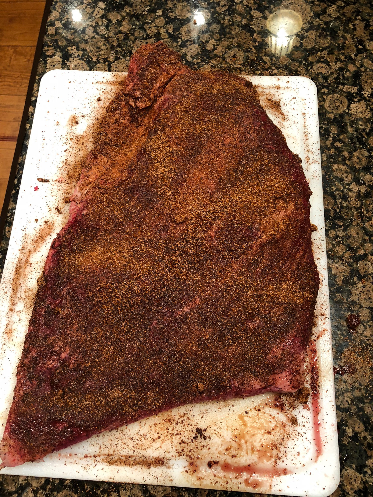 Working on a brisket cook. Trimmed down to a 12.1 pounder SRF Black. Will be using pecan to smoke with. Cow Dust Rub and using a little magic for the brisket prior, and during, the cook.