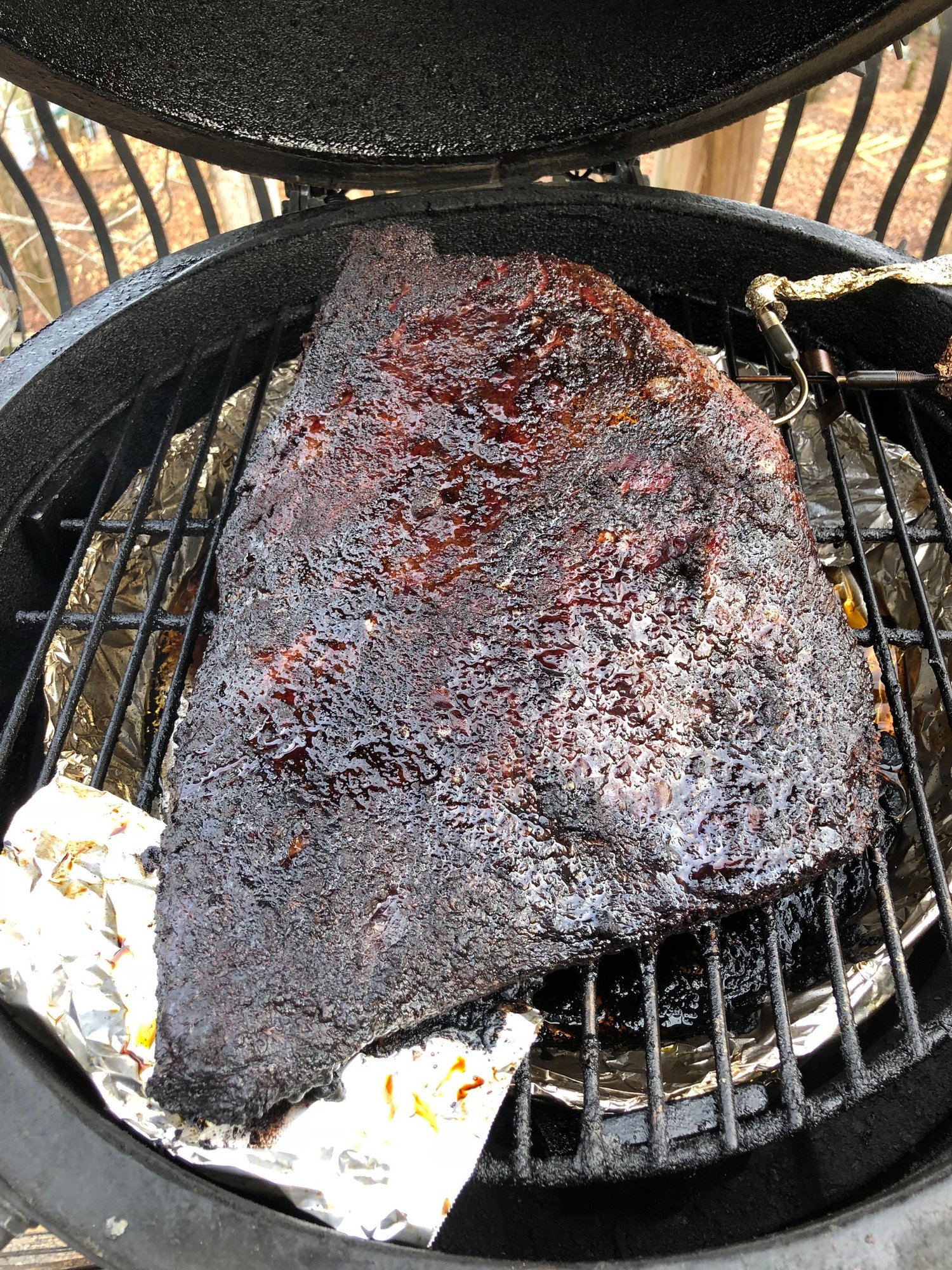 @Bgebrent Did you keep a 1/4” layer of fat on the point side of the brisket?  Fat side down or up on the egg?