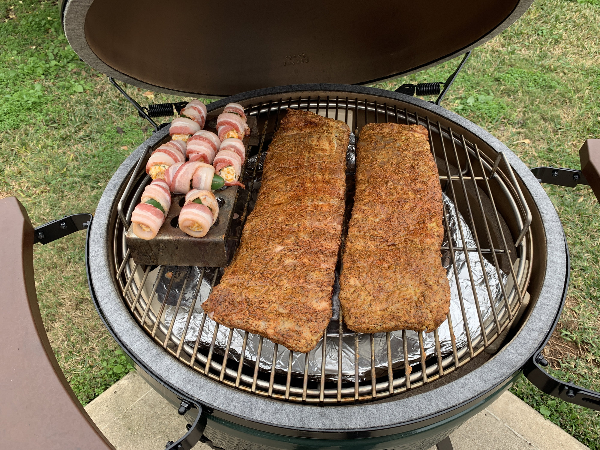Ribs and jalapeños are on.  I “had to wait” for my Woo and other CGS goodies to show up before getting the meat on.
