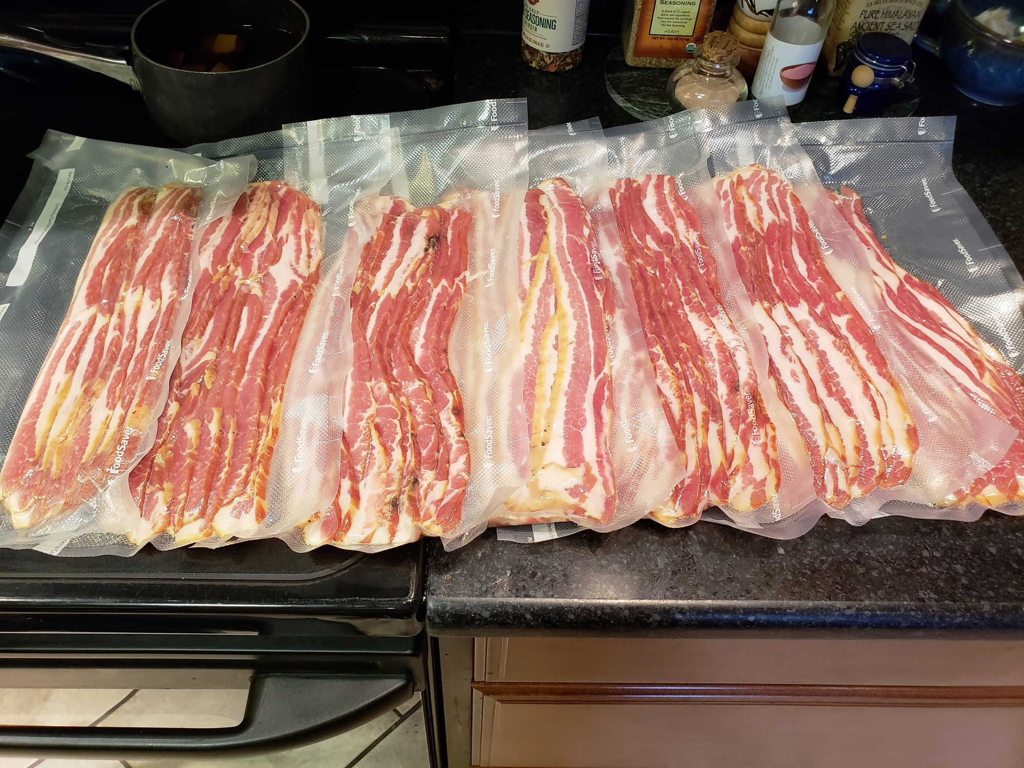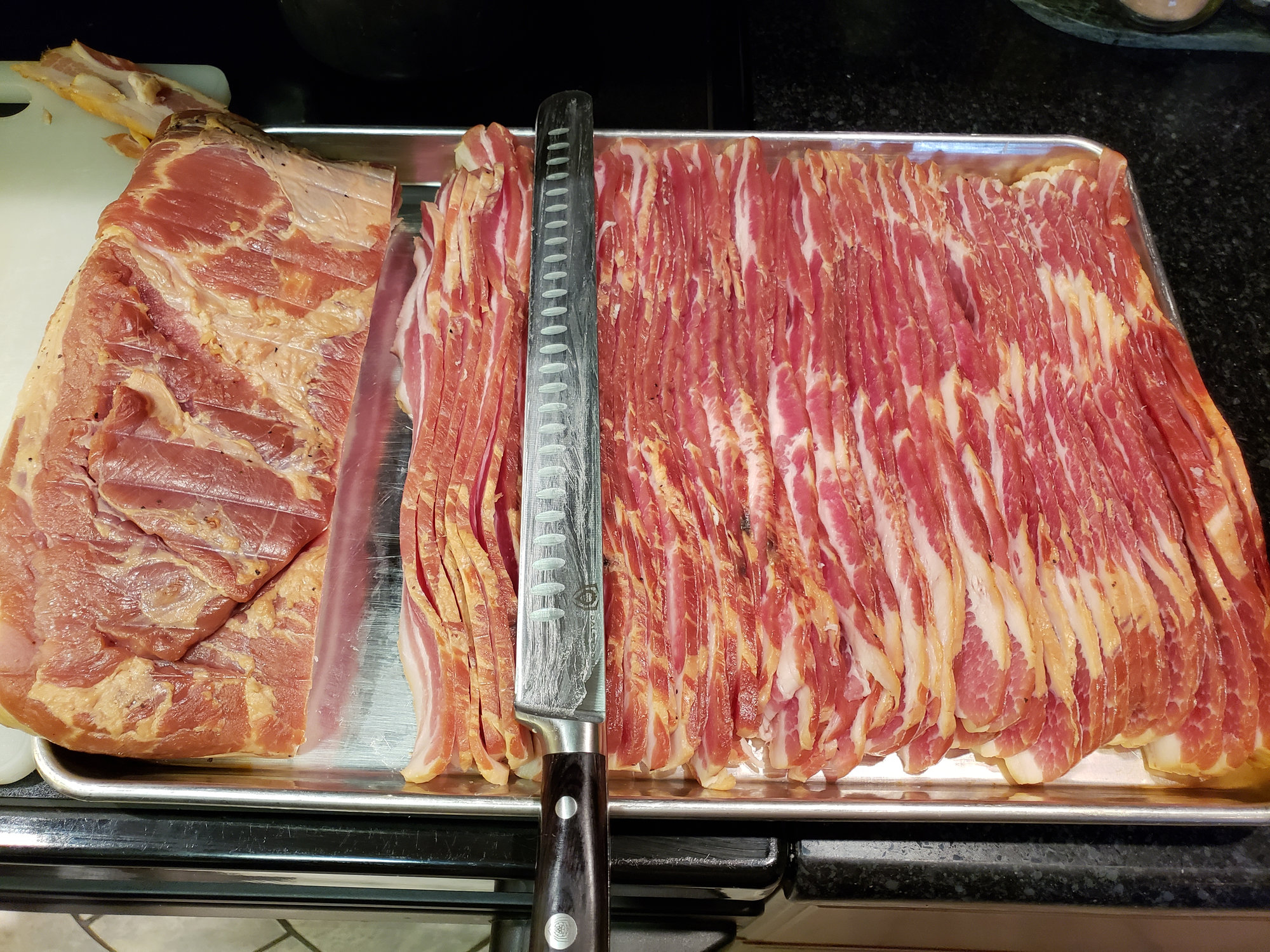 Bacon looks good everyone. I used to make about 50 pounds per year. One heart event and that is out. I did like mentioned and found a slicer very reasonable. Makes all the difference in the world when it came time to slice it up.
