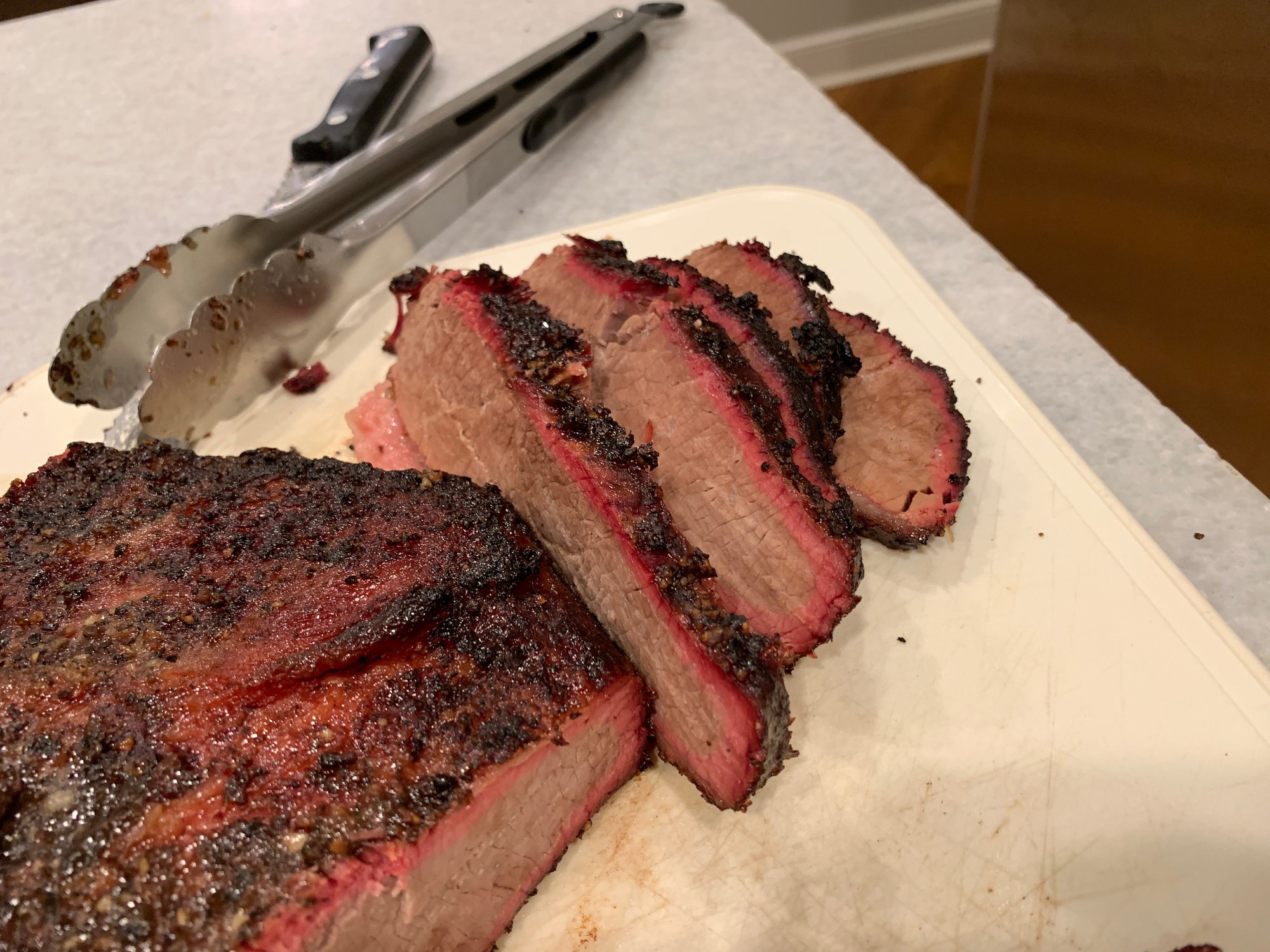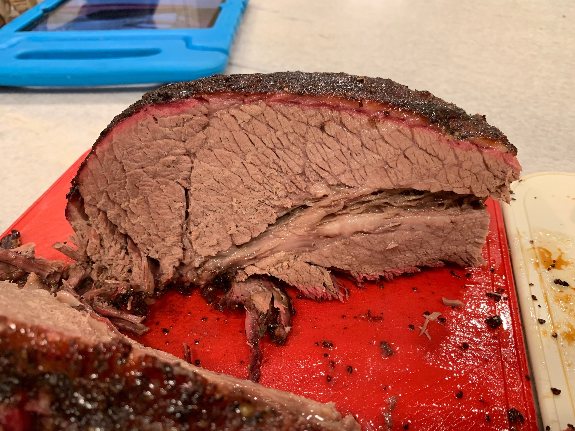 Which leads to a question.  All of the packers at Costco had huge points like this one.  I thought it ended up being too big, which along with not having even enough cooking, gave some of it more of a pot roast taste than I expected.  Does anyone have a rule of thumb for thickness of the point for best results?