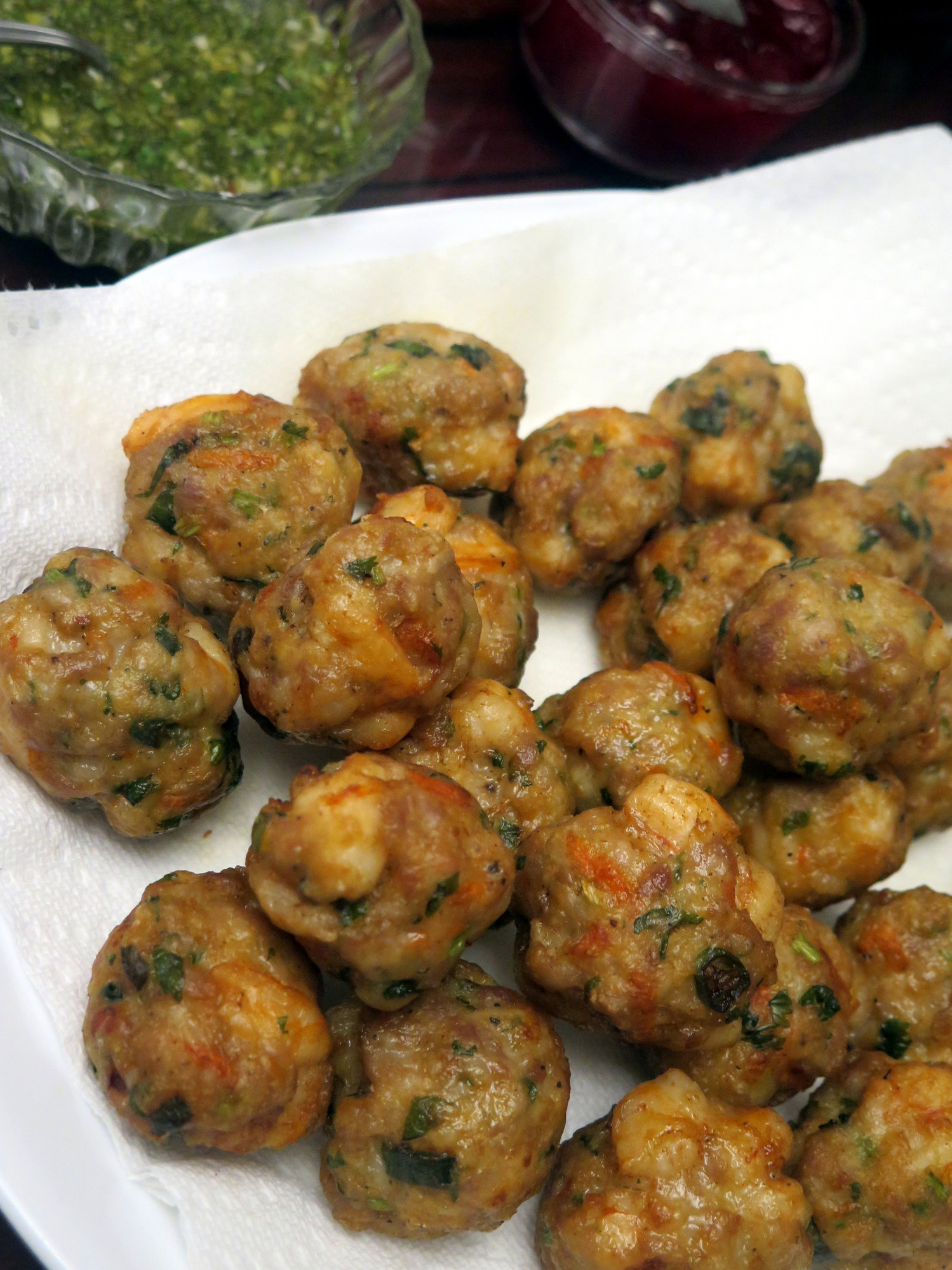 Deep fried shrimp/pork balls served with garlic lemon cilantro sauce...