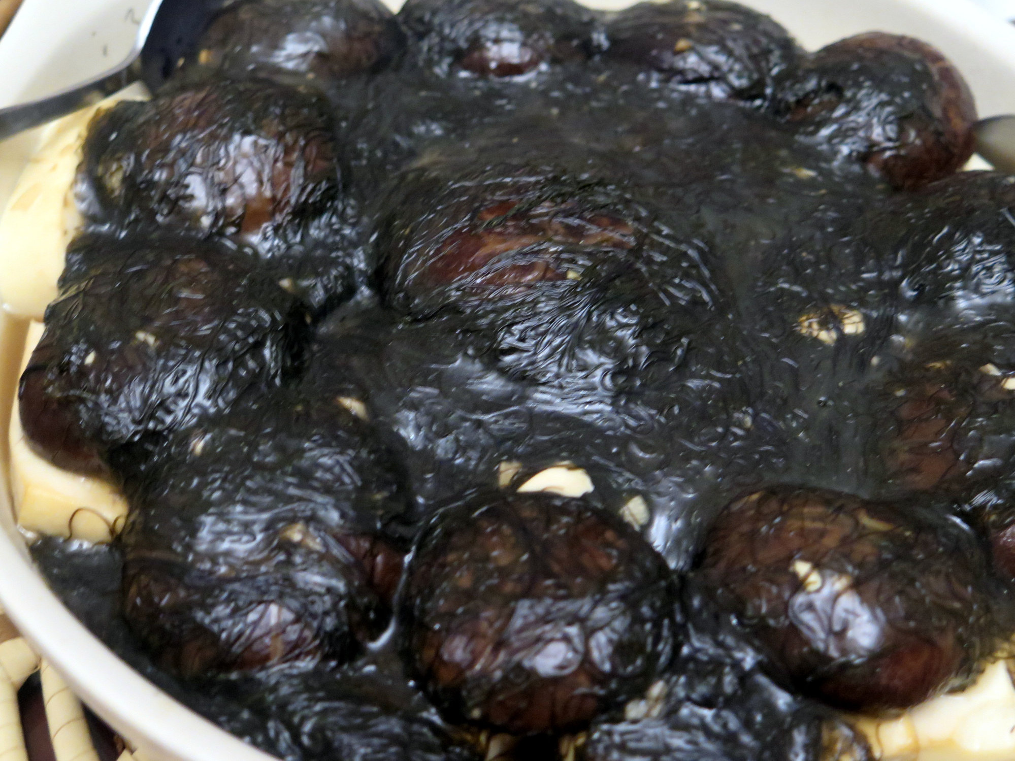 Tofu with shitake mushroom and Fat choy (black moss)...