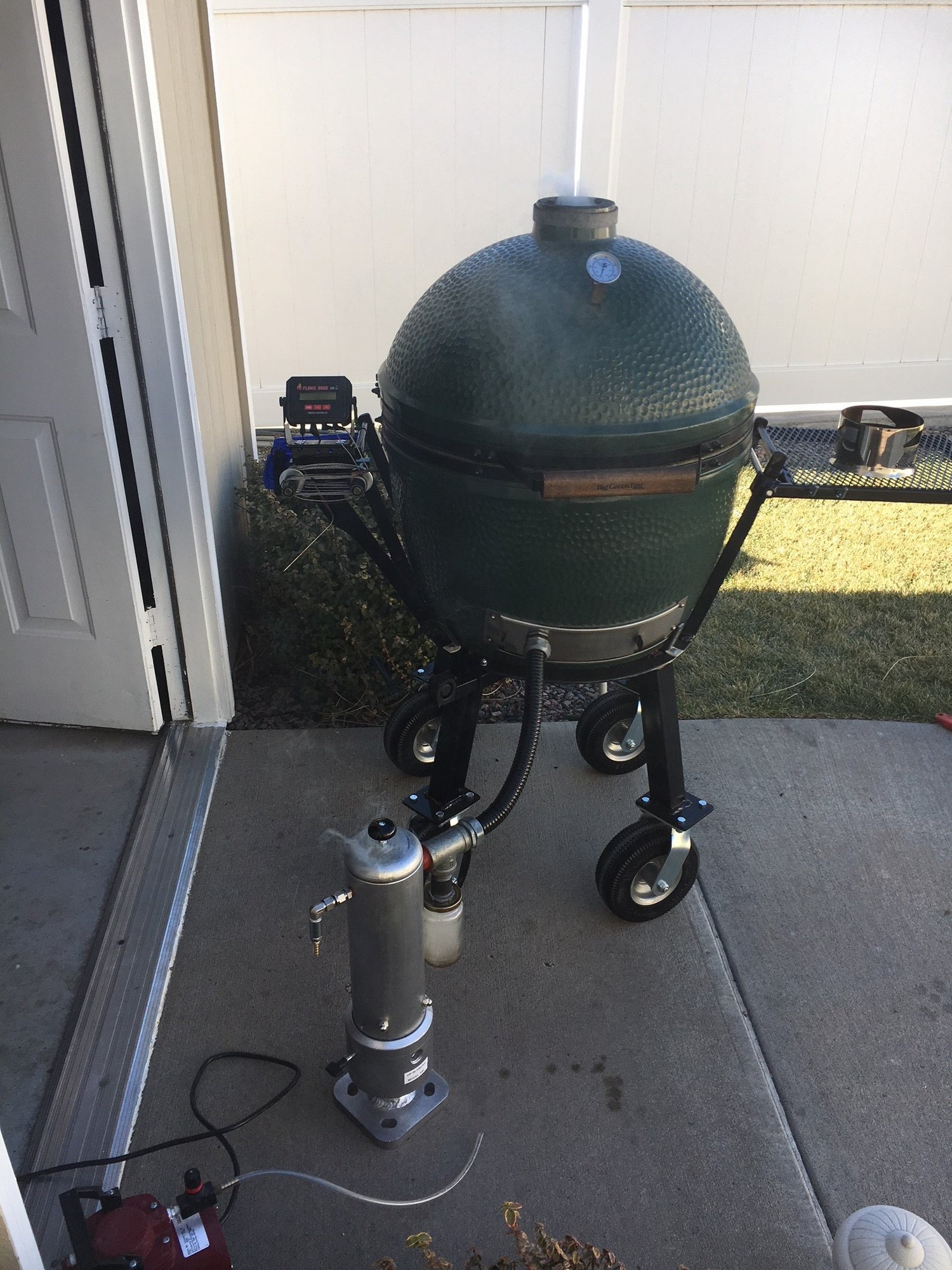 • Built one just like it, but it really puts out a LOT of smoke.  Too much for my egg.  Sold it to a local that had a 8’x8’ smokehouse, and he loves it.