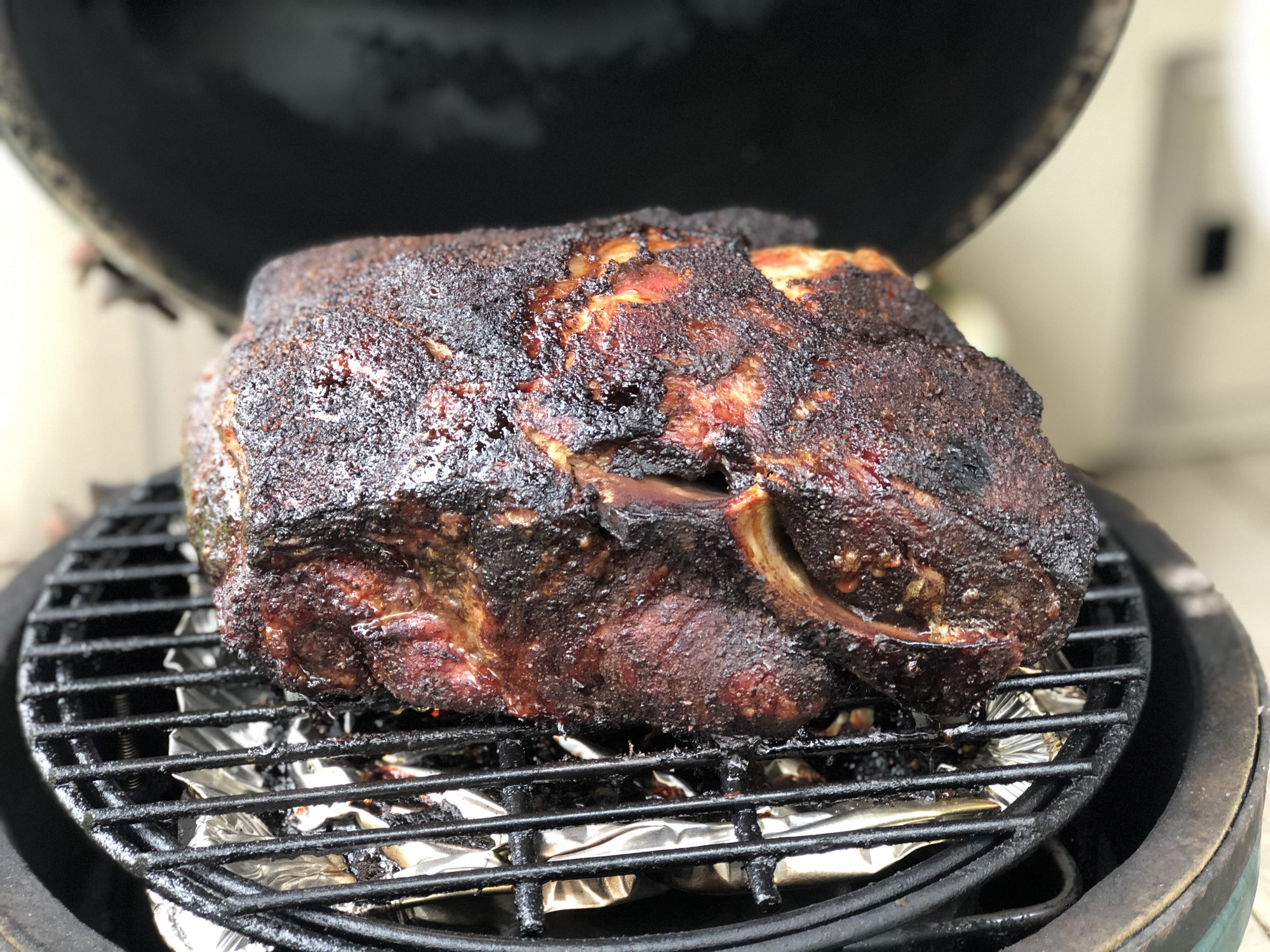 Lifted the Butt, cooking grid, deflecting stone and drip pan out of the Small using the CGS Woo and added a little more lump. couple more hours to go.