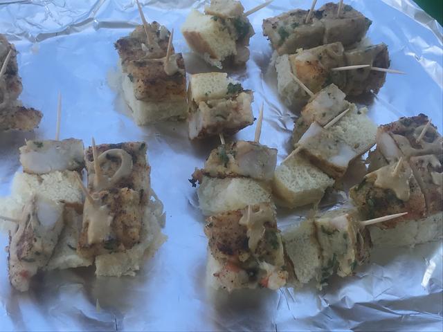 Next up was the Shrimpburgers with Wasabi Mayo...another hit (as usual)...cut into "bites" so more could sample...