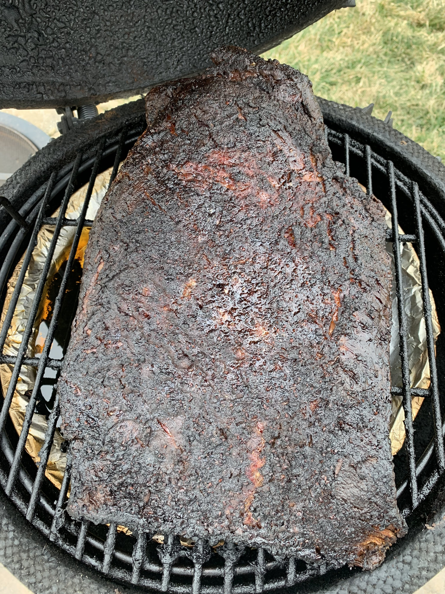 Mighty fine lookin' brisket right there!Allen, Texas LBGE, Orange Thermapen (fastest and easiest to find)