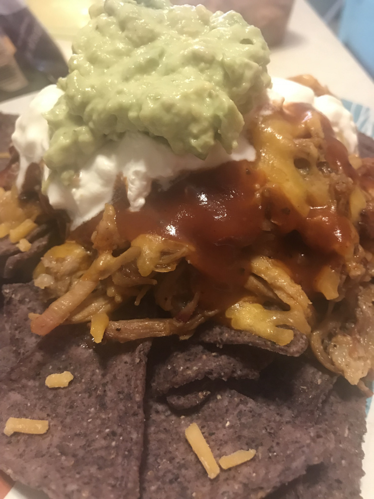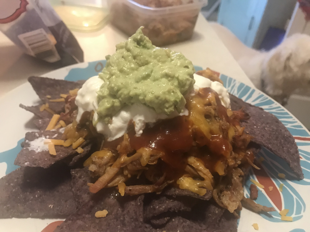 Yesterday Chef Norah Grace's day began before the sun decided to show its face.  She worked hard, cooked up a storm and fed 50 something people, but she wasn’t done.  When we came back home she had a small amount of pulled pork in a container and made her momma some pulled pork nachos (mom had to work 3 12s in a row).  She then took a shower and was out cold by 9pm. It’s now it’s now just after 7am with no signs of her getting up soon.