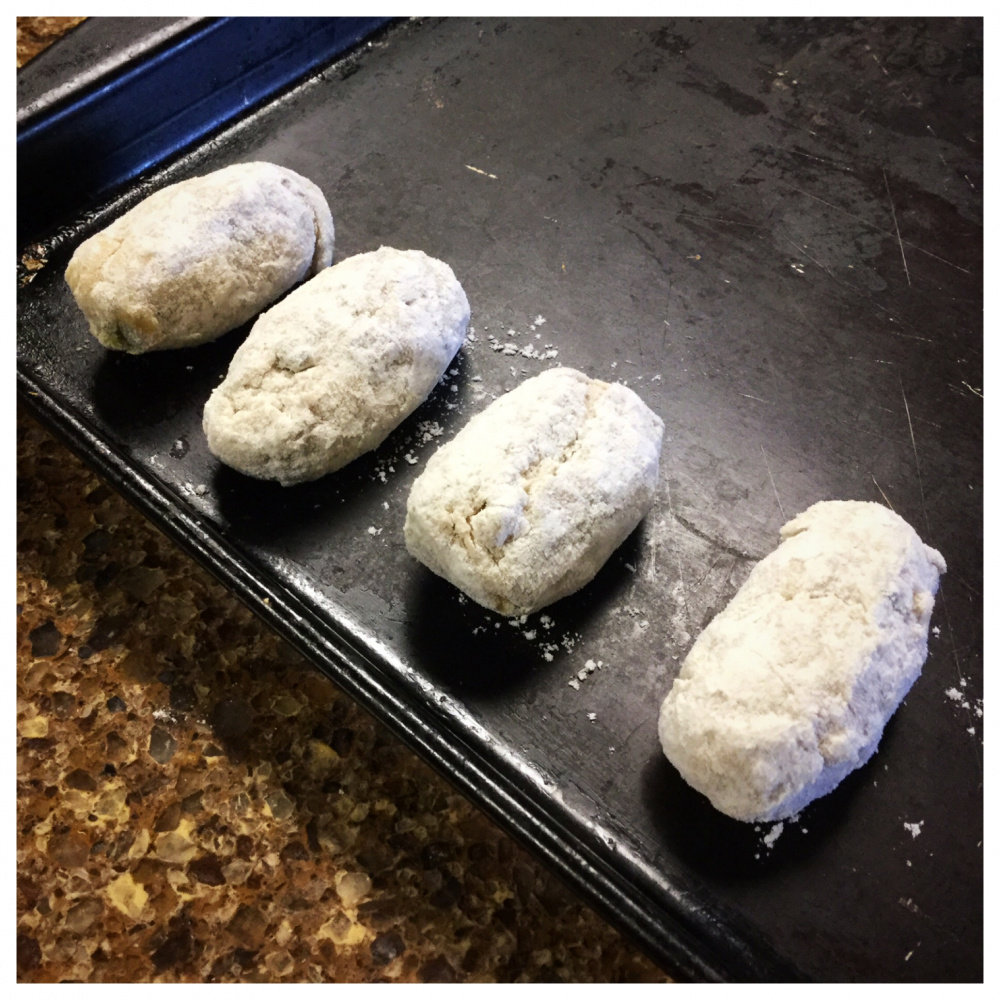 I used two spoons to basically form a quenelle out of the stiff gravy. Then I dropped it straight into flour and tossed it.
