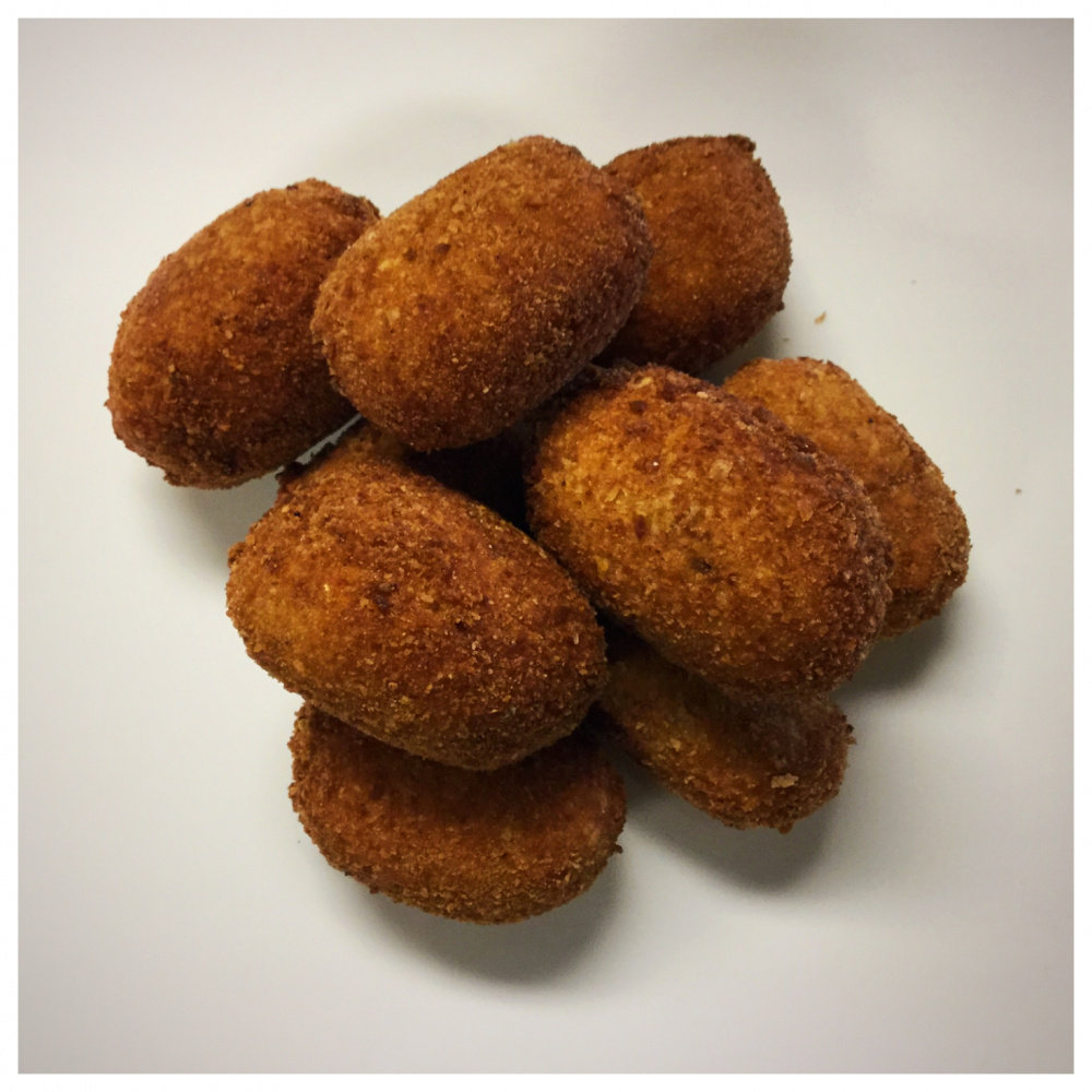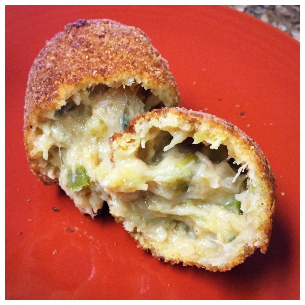 We’re talking about gravy with added goodness. You make gravy (Béchamel) then add goodness. Then chill it until it sets up. At that point portion out appetizer sized pieces and bread it then deep fry it.