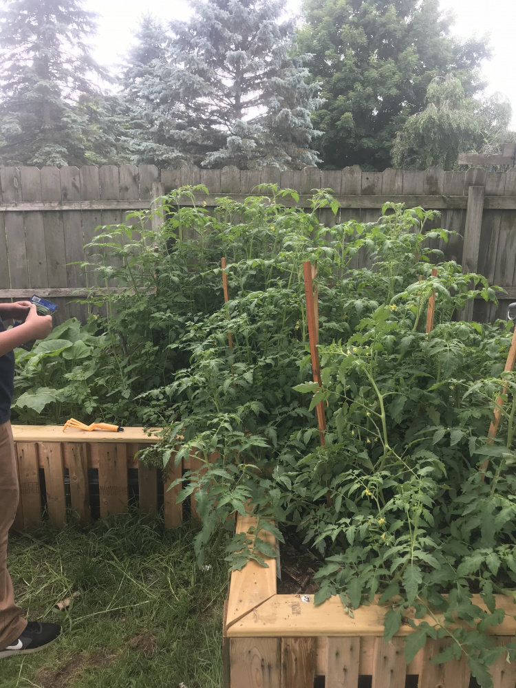my growing season is so much different, im getting a good 14 hours sun and my plants are planted on an actual spring so they get water around the clock. i need to keep the lower branches trimmed fairly high to keep the air flowing under the plants. all i can think of is tomatoes dont like hot, im good between 60 and 90 degrees for the most part. just finished planting, its now a race against the short growing season. first time adding pots for me, had 4 extra plants that couldnt go in the raised beds