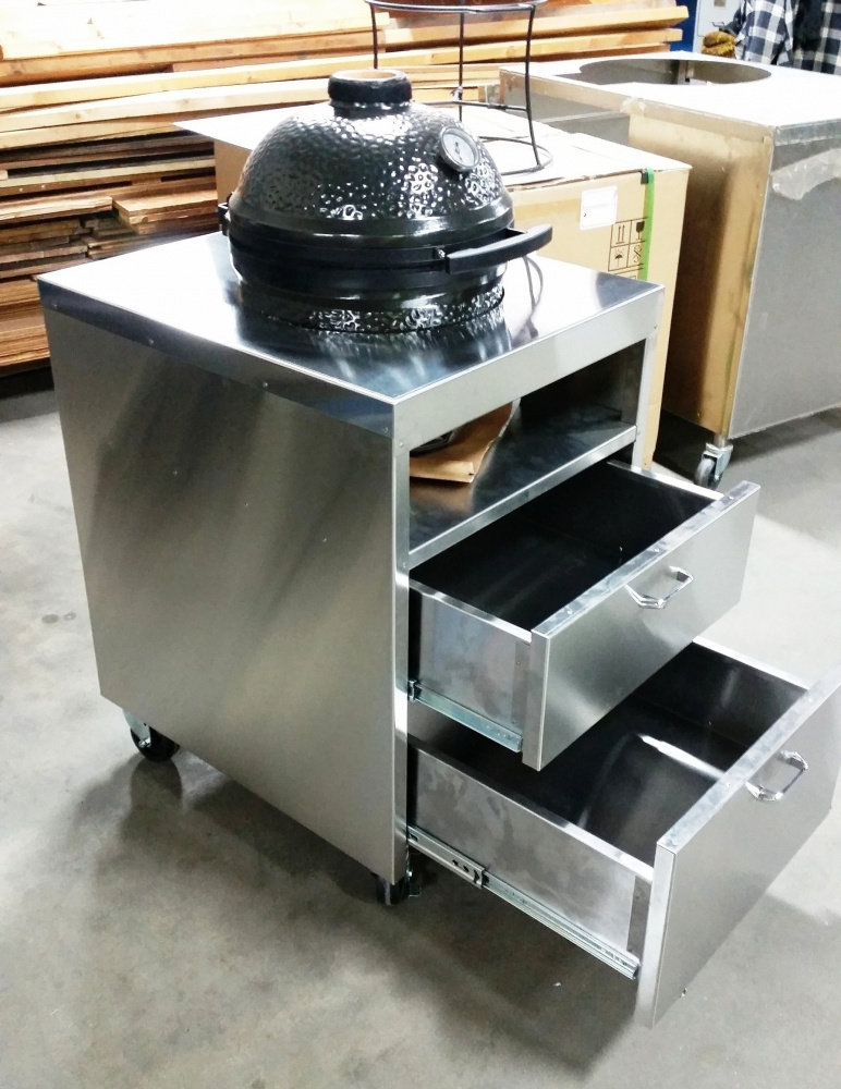 I've had my large in a cypress table I built for the past 7-8 years. It's done well, and I never really even considered a nest, as I thought they might be top heavy and easily tipped over. Two lab puppies later and my cypress table has been nibbled, chewed and weathered to the point it needs to be replaced. In the meantime, I've picked up a Kamado Joe Jr I want to set somewhere, too, where it's higher up and easier to use. It's a great little grill, and easily transportable. It comes in one of those little wrought iron ring stands that elevates it about a ft off the ground. So, I'm considering either building another table for both, with the KJ Jr being slid into a cutout in the table where it's proper height when in use, and easily slid out when I want to take it with me.