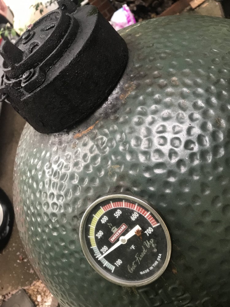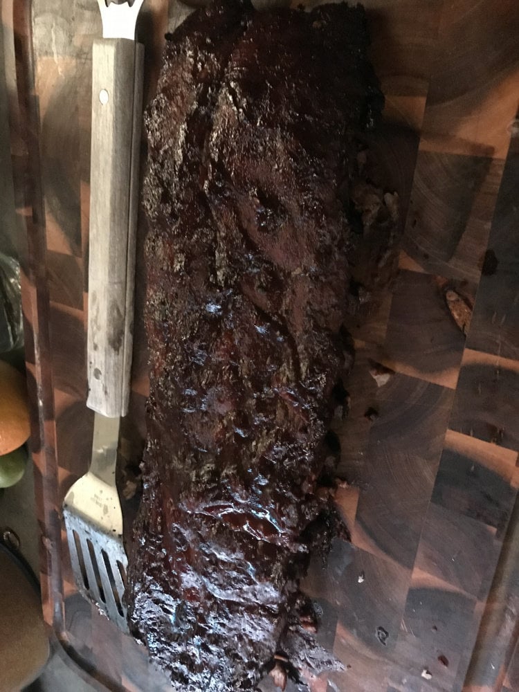 The large BGE was running solid from 3 am to 10 pm without reloading any lump. I did add three chunks of cherry for the ribs. That’s a helluva cooker!