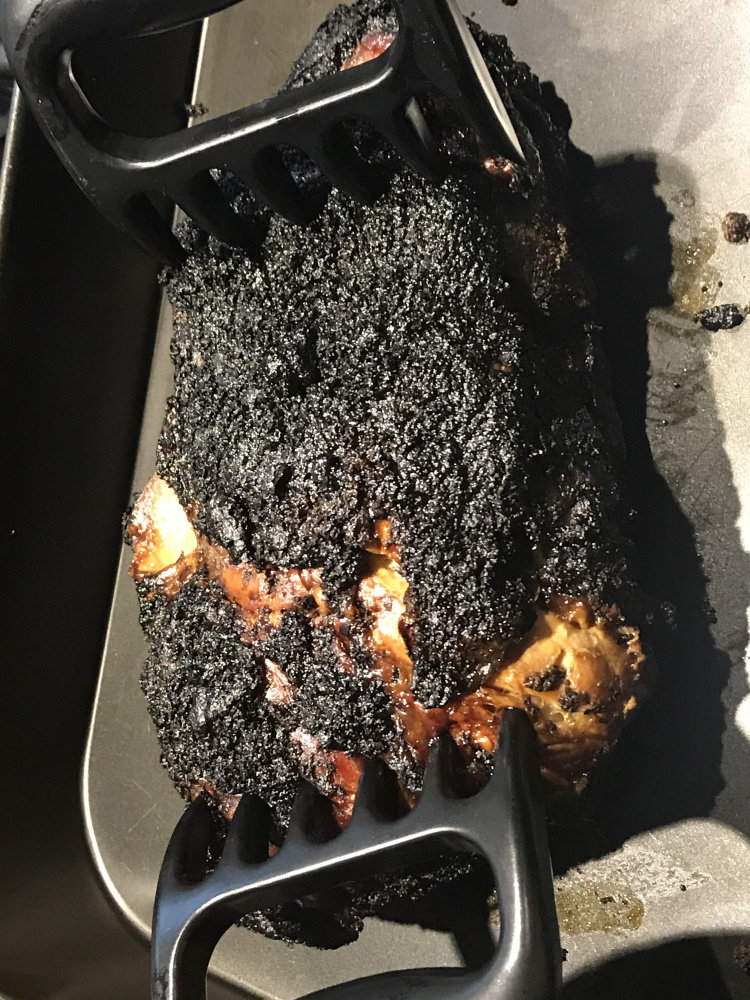end product was pretty good. Brandi really liked them. I like my ribs a bit more firm. I’m guessing the IP loosened up the flesh too much for my personal taste. Two hours of smoke helped a LOT. fizzy pig dry rub first, then bone sucking sauce.