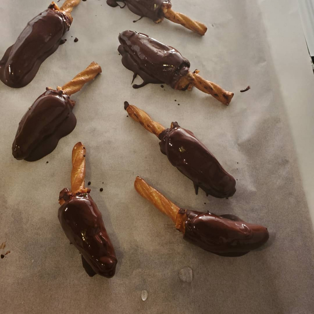4. Melt dark chocolate in a small bowl(I used a mason jar for easy dipping), microwave in 30 sec intervals stirring between zaps until smooth.